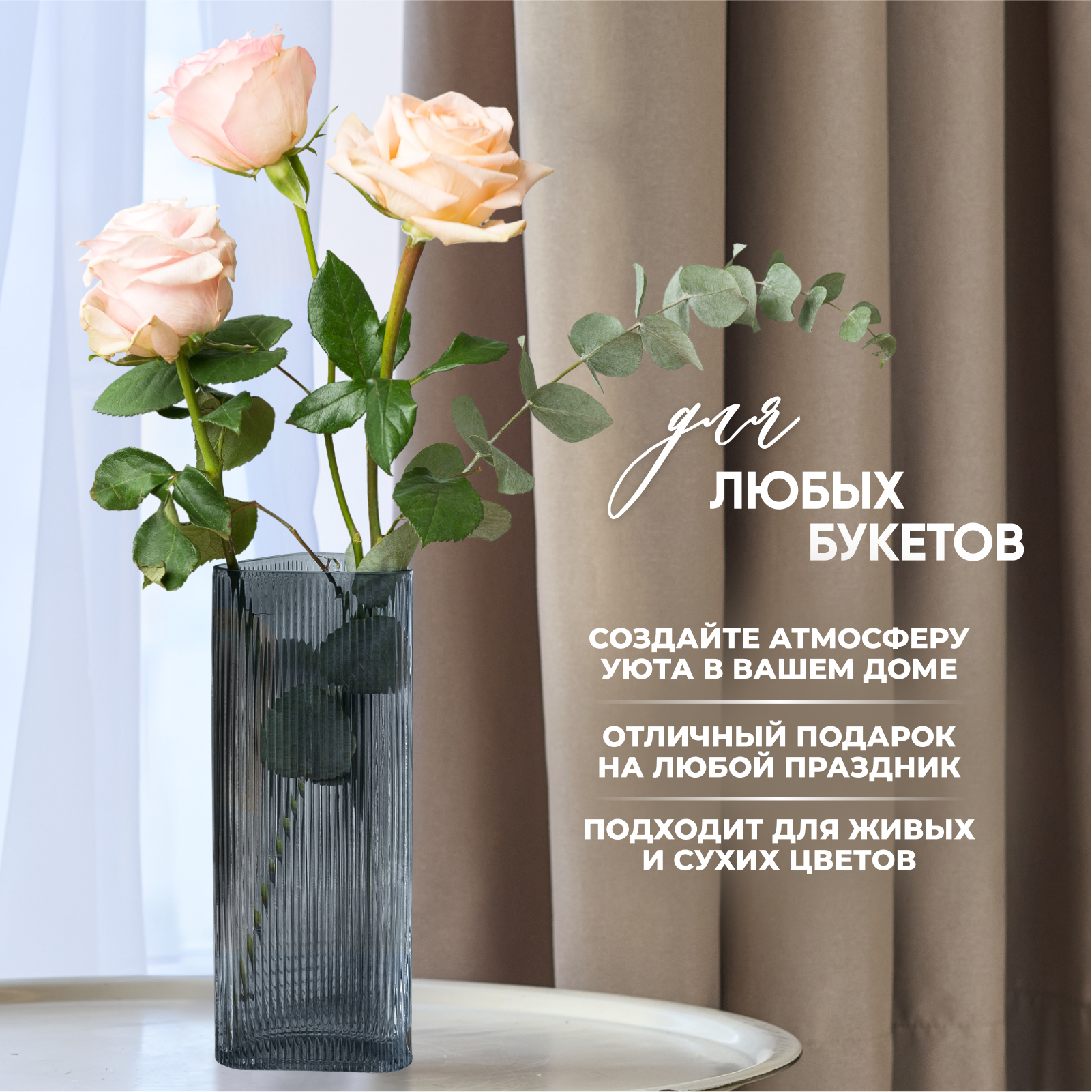Ваза для цветов и сухоцветов высокая, стеклянная интерьерная 2 л, 27 см, цвет серый 3 276 ₽