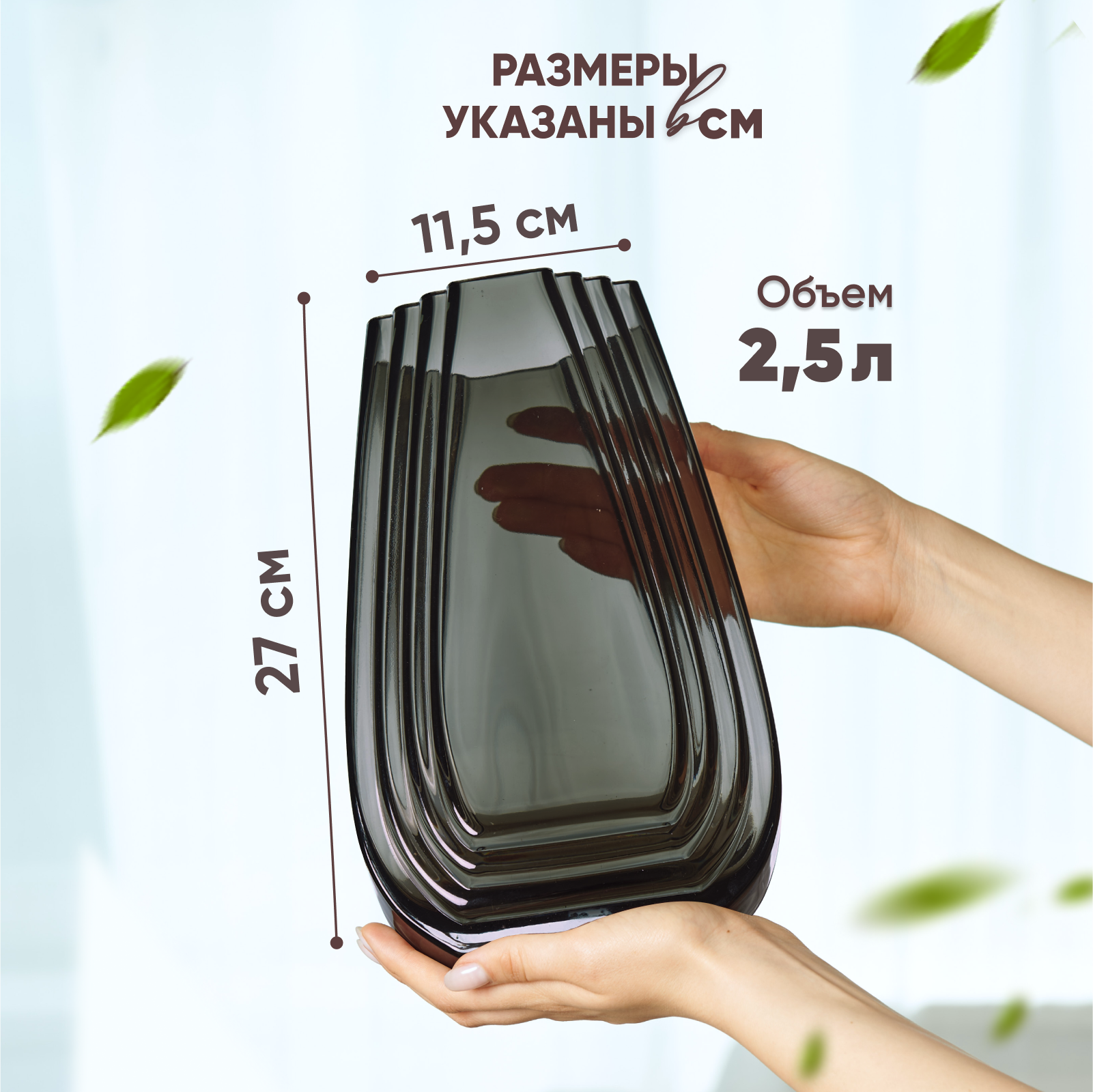 Ваза для цветов и сухоцветов высокая, стеклянная интерьерная 2 л, 27 см, цвет серый 3 276 ₽