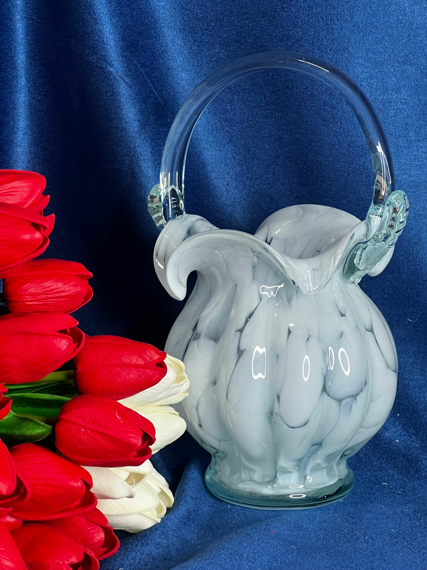 Ваза "Корзинка" из цветного стекла Белая 22 см информация: