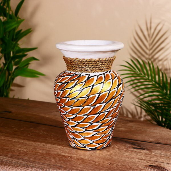 Керамическая ваза декоративная настольная Дерк , для цветов, сухоцветов, d-9 см, h-19.5 см, золотисто-белый 1 854 ₽