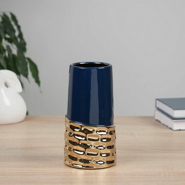 10 цен на Ваза "Космин", труба, d=7 см, 18x9.5 см, керамика, сине-золотая