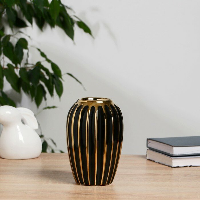 Керамическая ваза декоративная настольная «Дерк» полосы, для цветов, сухоцветов, d-9.5 см, h-24.5 см, золотисто-чёрный 2 457 ₽