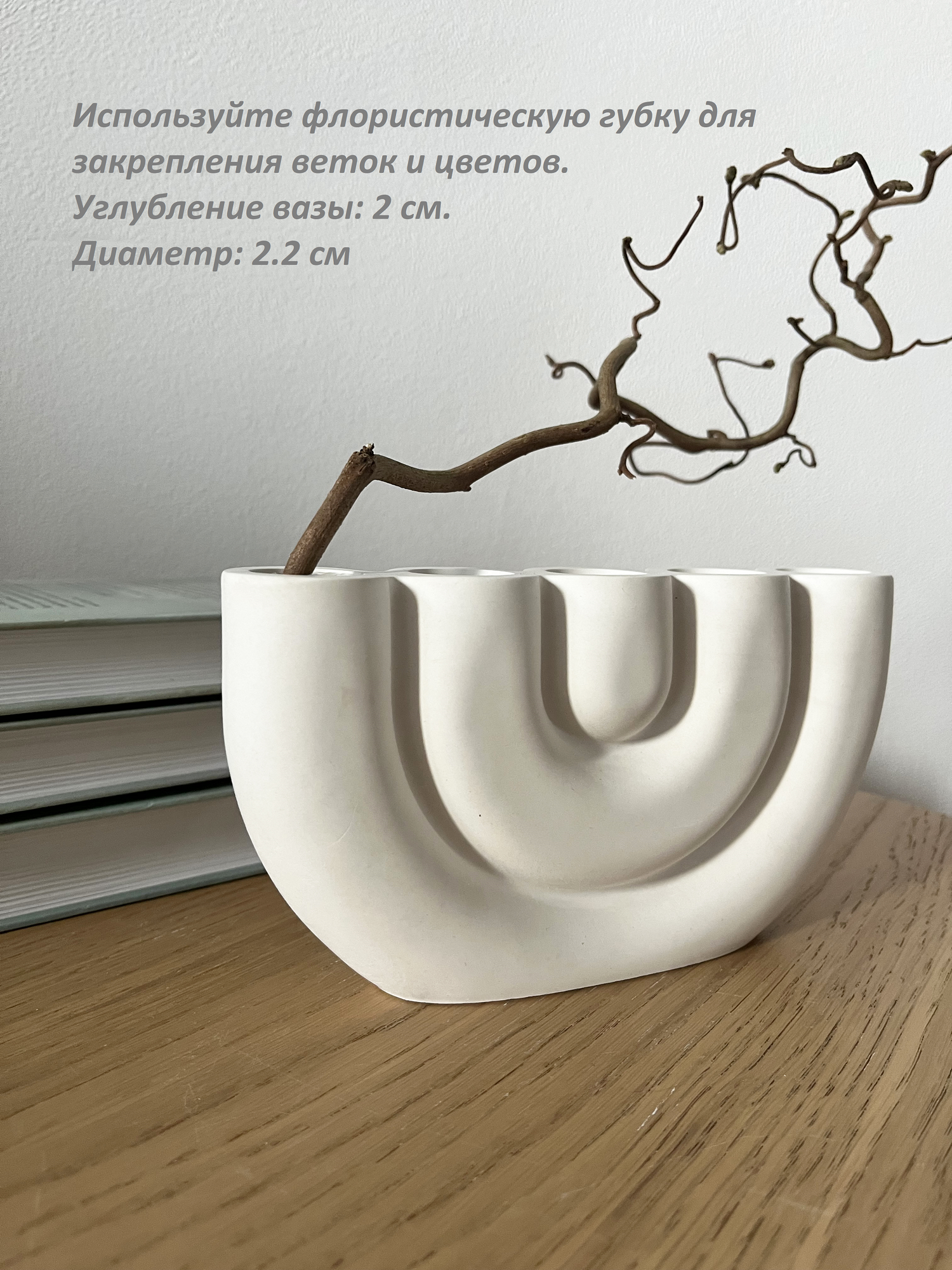 Ваза allmoss "Ахра", белая, из бетона, 11.5*3.5 см, настольная