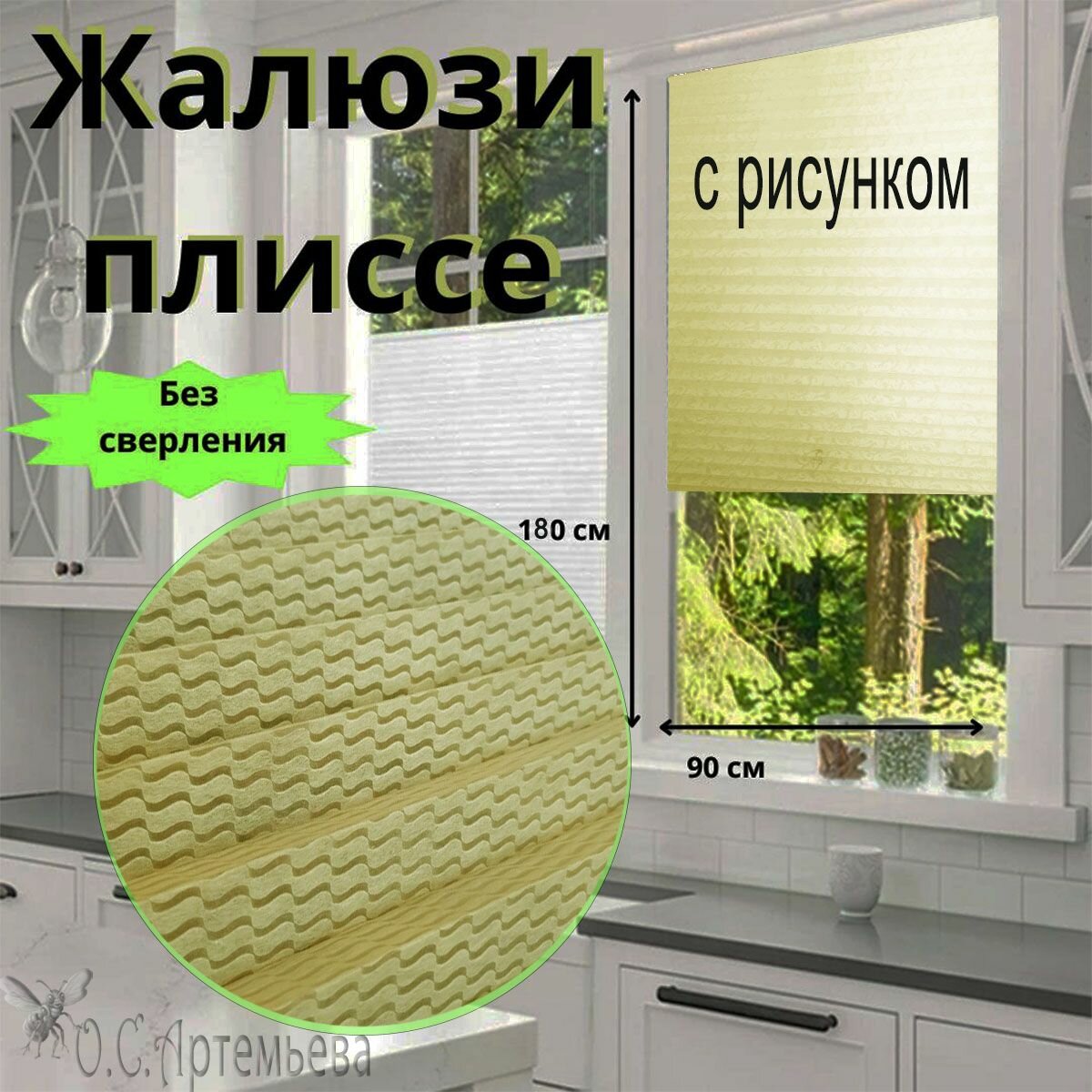 Отзывы на Жалюзи плиссе с рисунком на окна и дверь самоклеящиеся 90х180 см полиэстер, ваниль