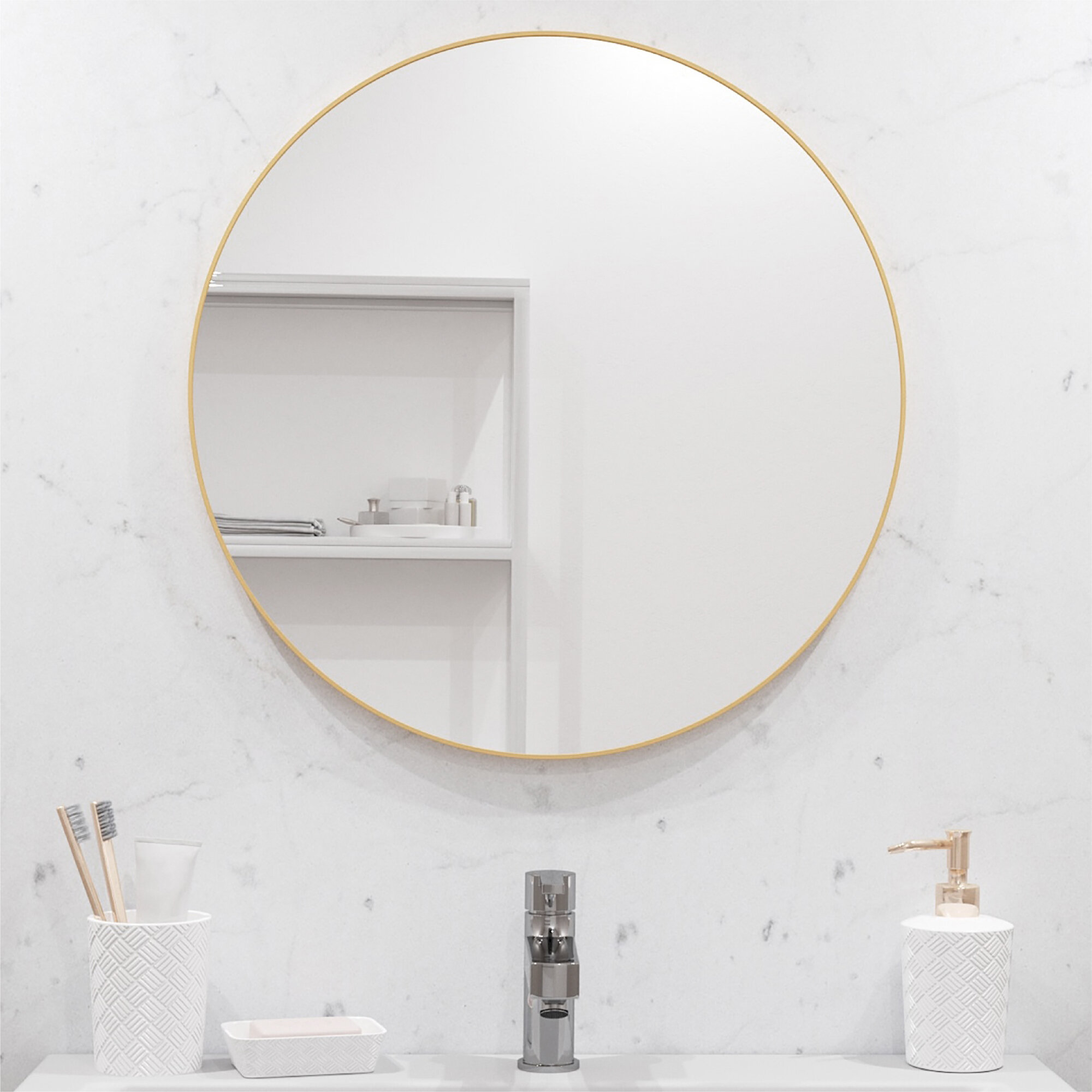 Зеркало Postermarket "Рей", круглое, настенное, в раме, цвет : белый, 70х70 см
