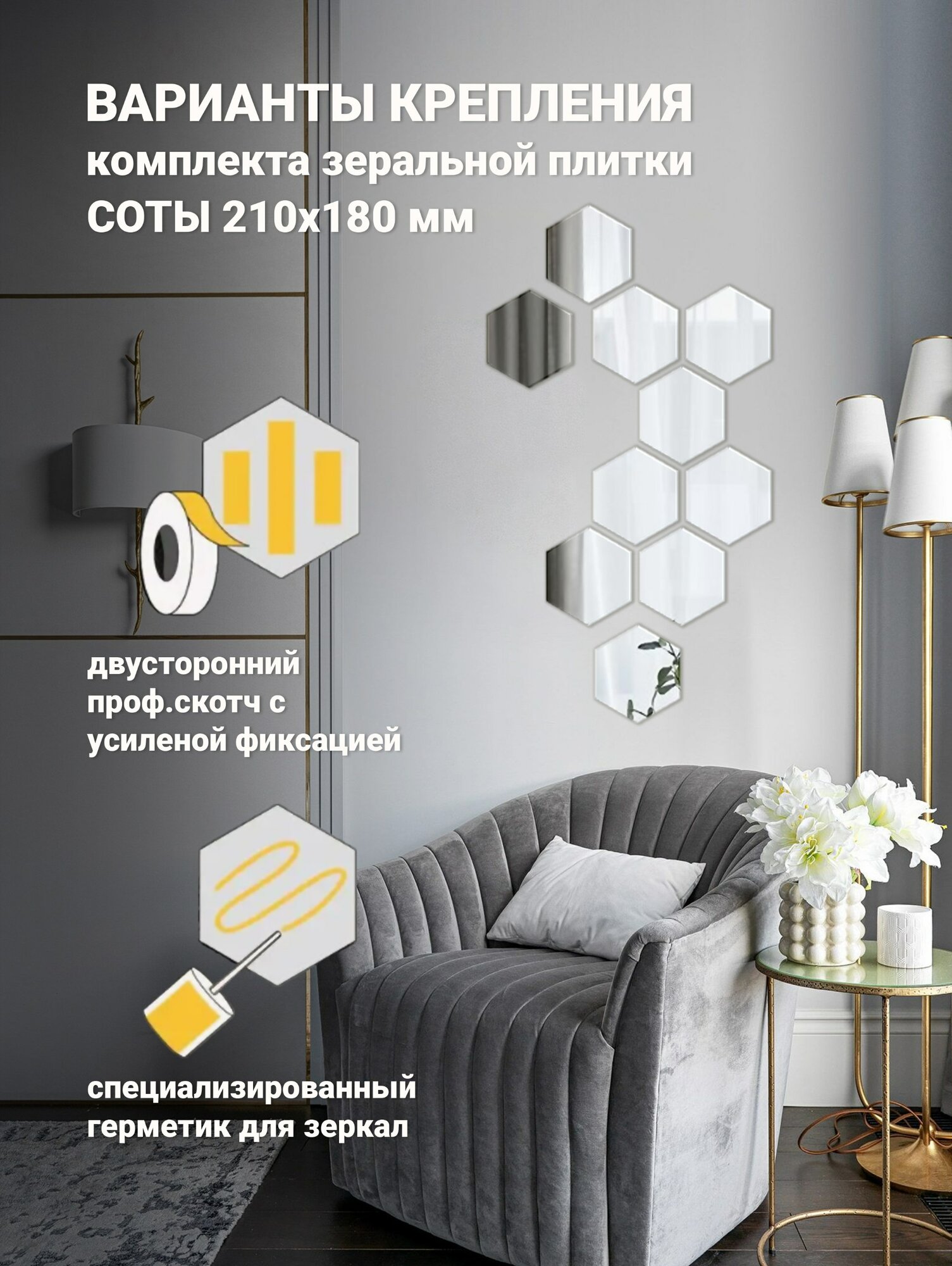 Зеркальная плитка Дом Стекла21 сота Серебро с еврокромкой 180х210 мм 10 шт информация: