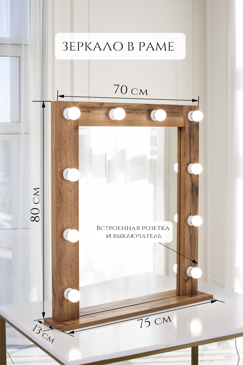 Отзывы на Гримерное зеркало в раме на подставке с выключателем и розеткой (Дуб вотан)