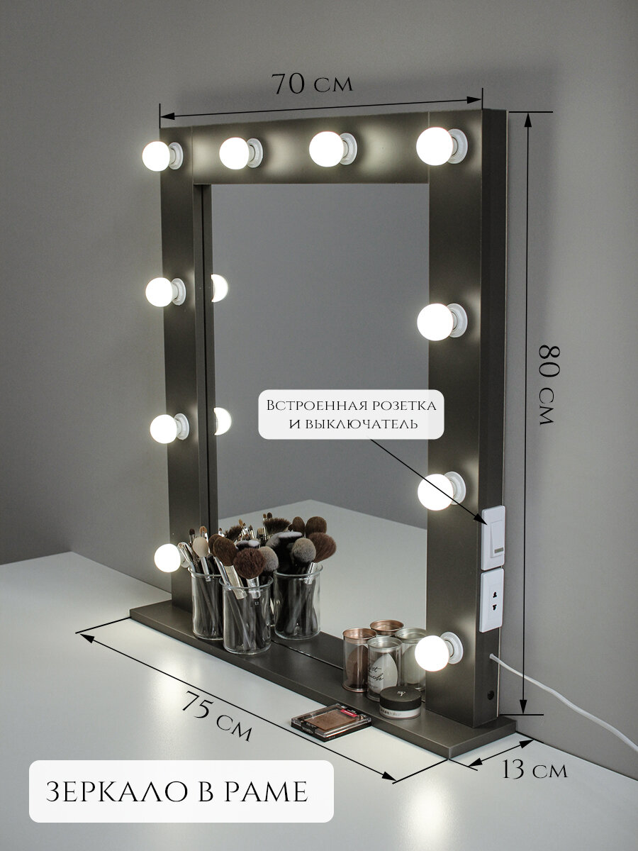 10 цен на Гримерное зеркало на подставке В раме с выключателем и розеткой графит
