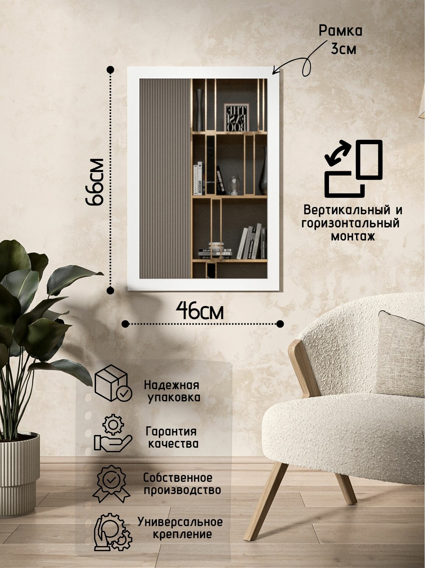 Зеркало MебельСтиль, прямоугольное, в деревянной раме, белое, 66x46 см информация: