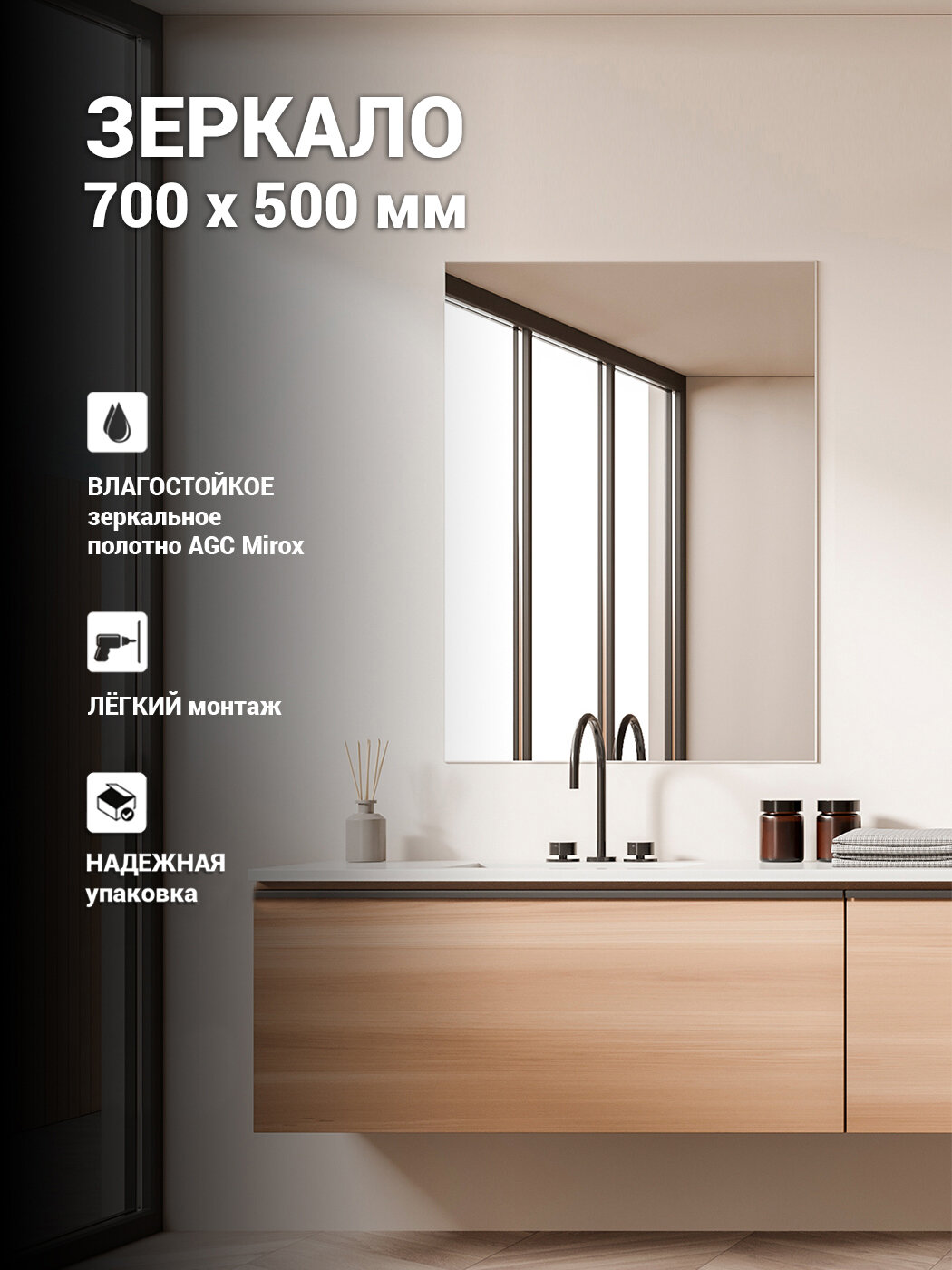 Отзывы на Зеркало Дом Стекла 21 "Пронт", 70x50 см, прямоугольное, без рамы, серебристое