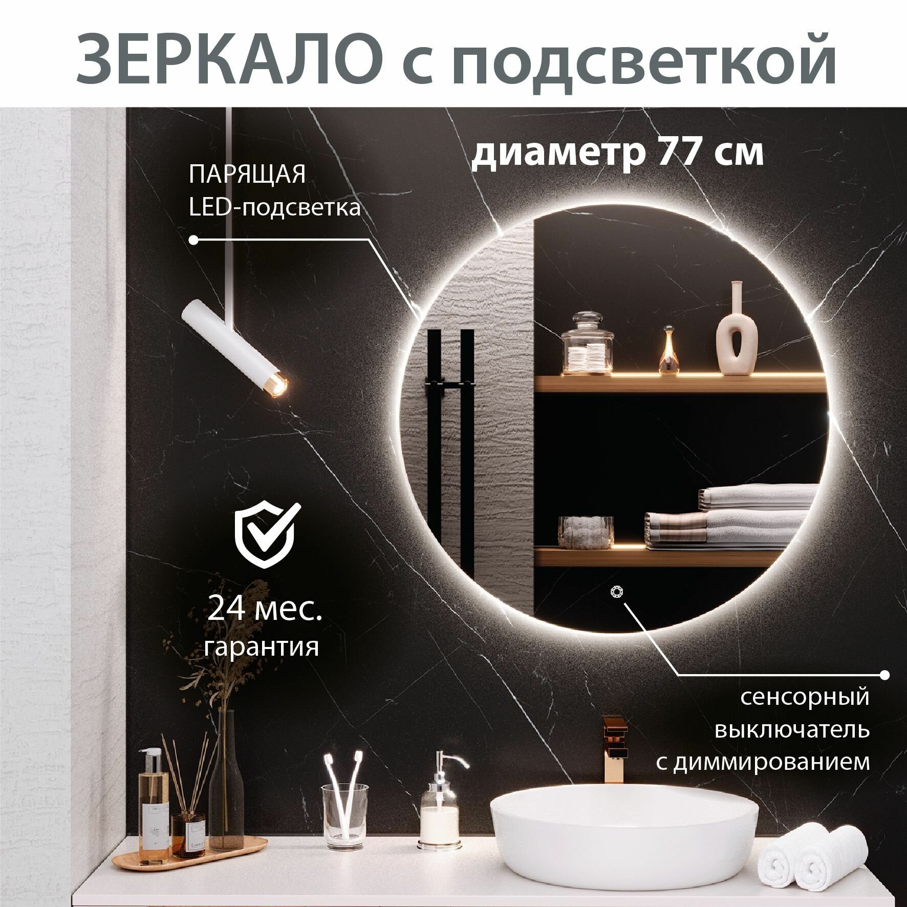 Отзывы на Зеркало круглое MILAN 77 см с подсветкой , сенсорный выключатель / AQUA DE MARCO