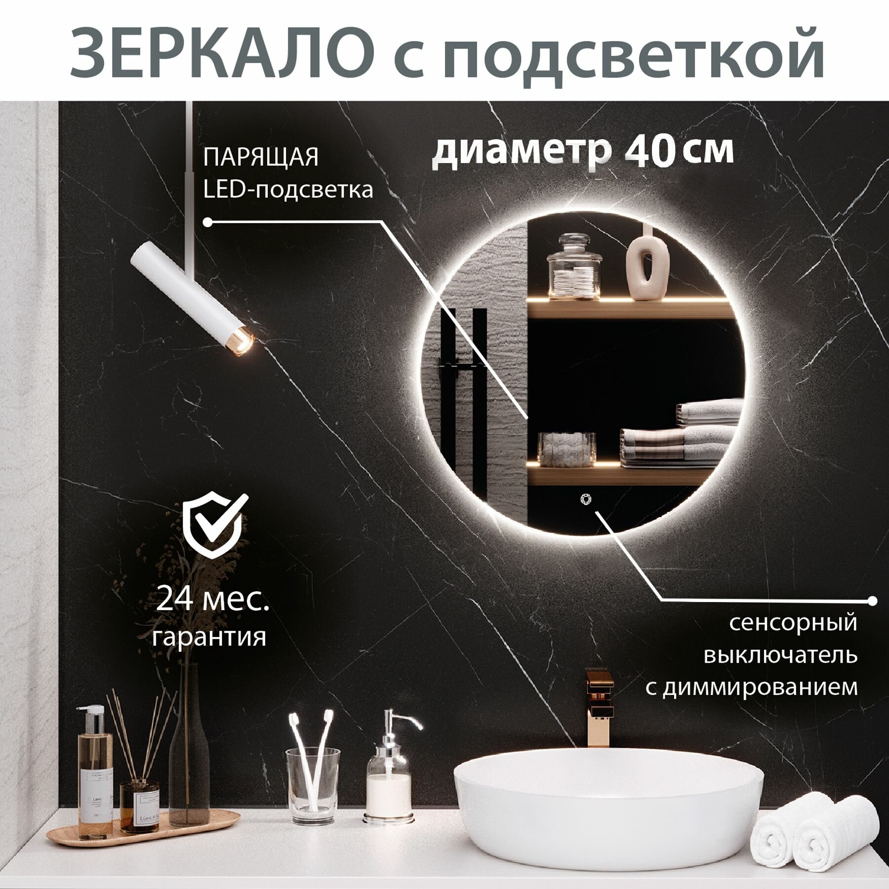 10 цен на Зеркало круглое MILAN 40 см с подсветкой , сенсорный выключатель / AQUA DE MARCO