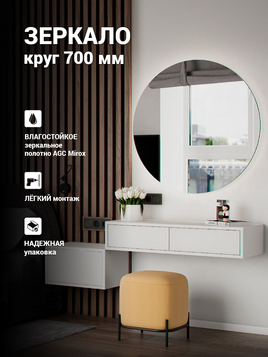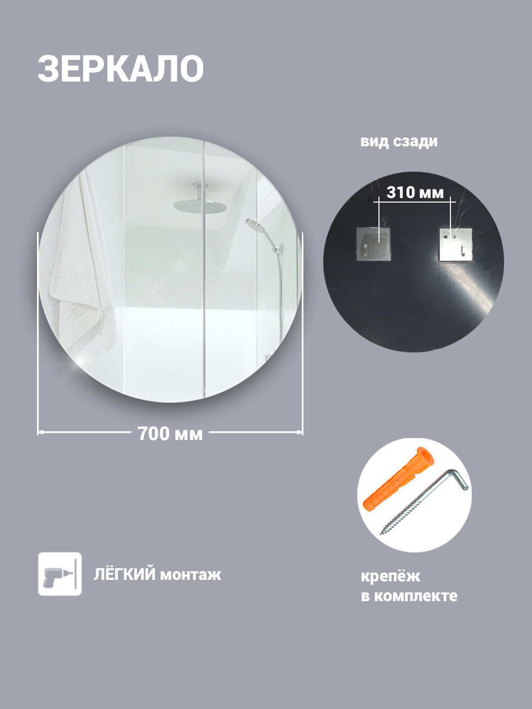 Отзывы на Зеркало "Дом стекла 21" в ванную круглое настенное диаметром 70 см