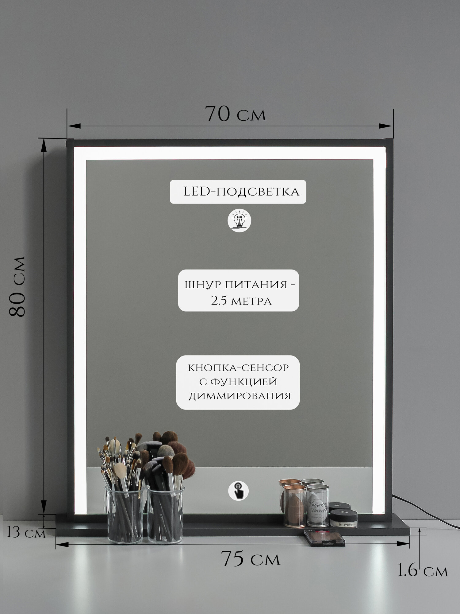 Гримерное зеркало с LED подсветкой, на подставке графит 70*80см информация: