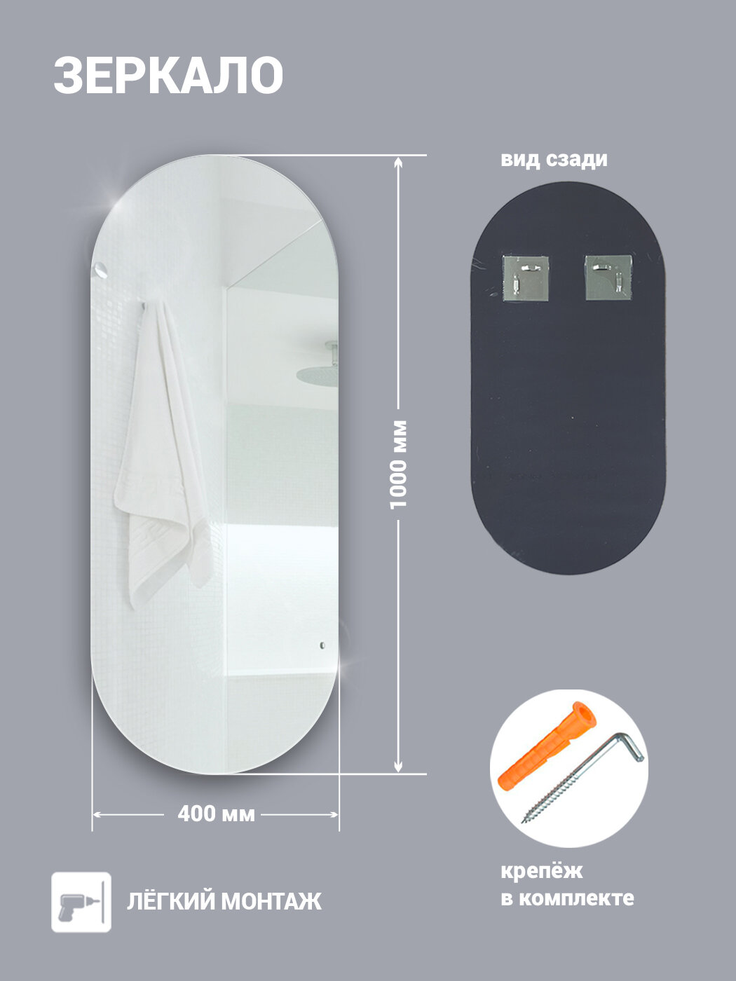 Зеркало от бренда "Дом стекла 21" SANDAL, настенное, в виде капсулы, без рамы, 1000х400 мм информация: