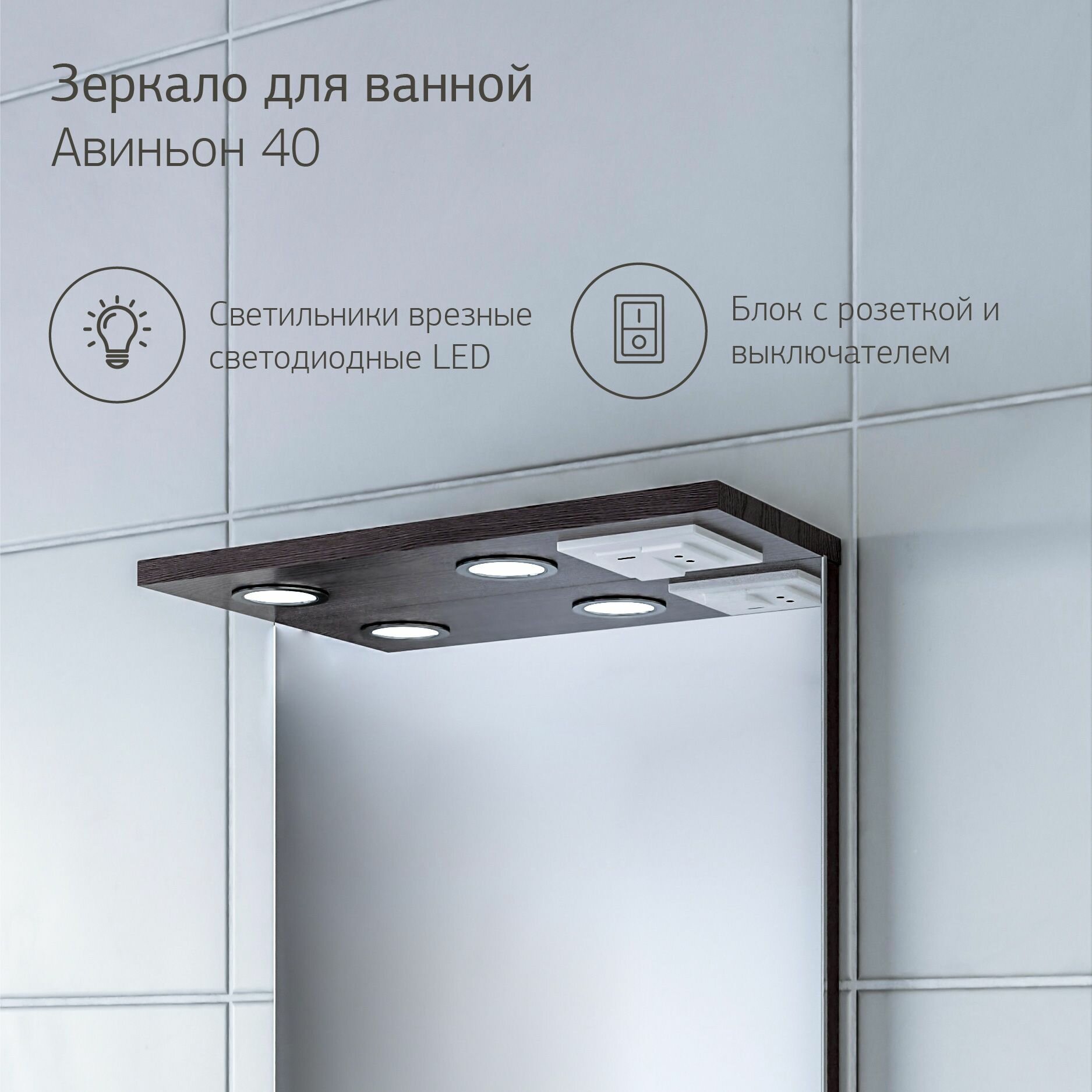 10 цен на Зеркало настенное Авиньон (Кристалл) 40 в ванную, с подсветкой, Ясень Анкор темный