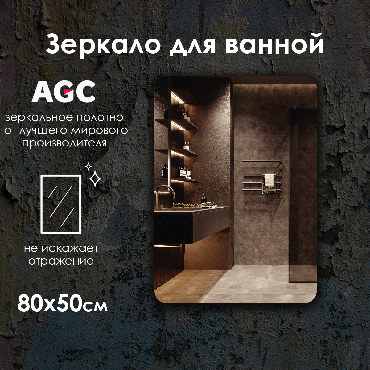 Зеркало настенное Maskota для ванной без подсветки, скругленное прямоугольное 80 х 50 см информация: