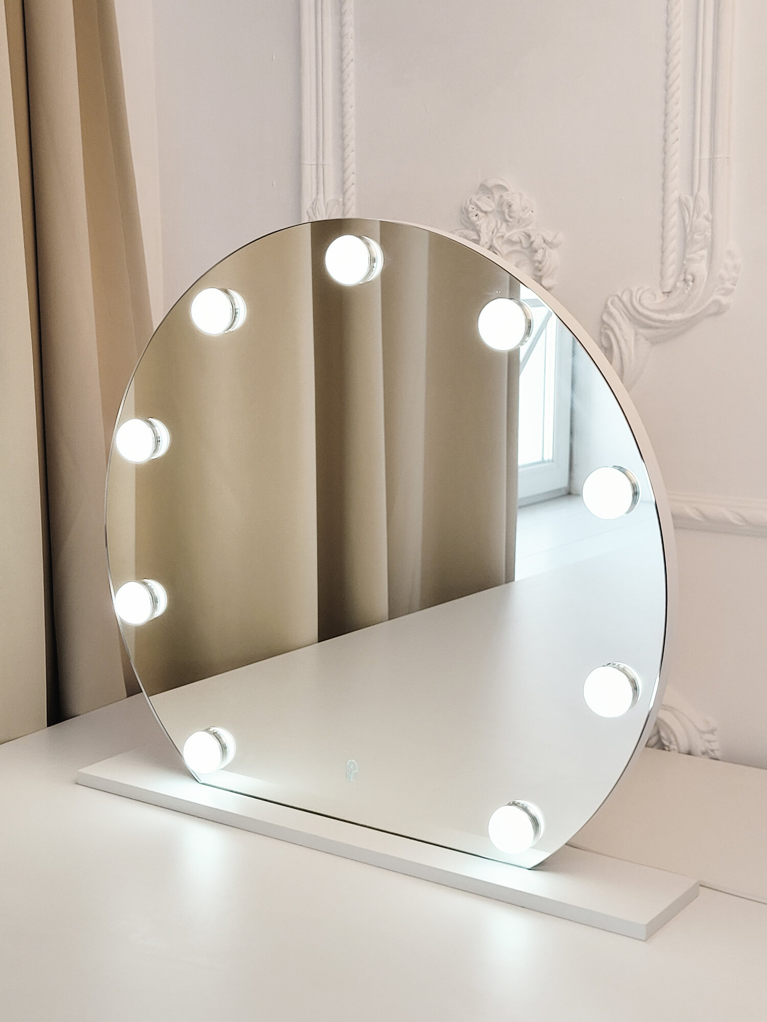 Отзывы на Настольное зеркало на подставке с лампами, кнопка сенсор, 70*70см Белое
