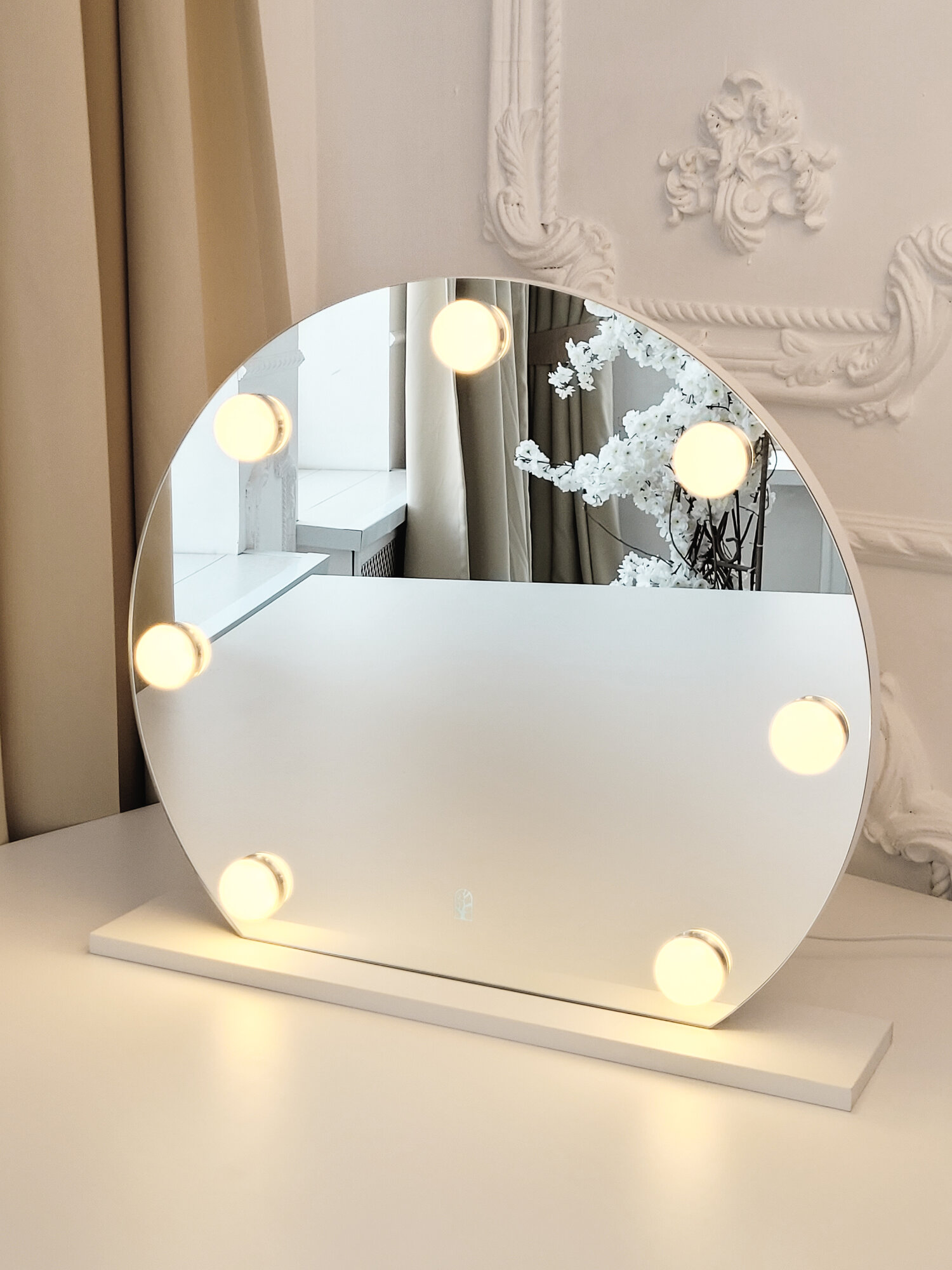 Отзывы на Настольное зеркало на подставке с лампами, кнопка сенсор, 52*52см Белое