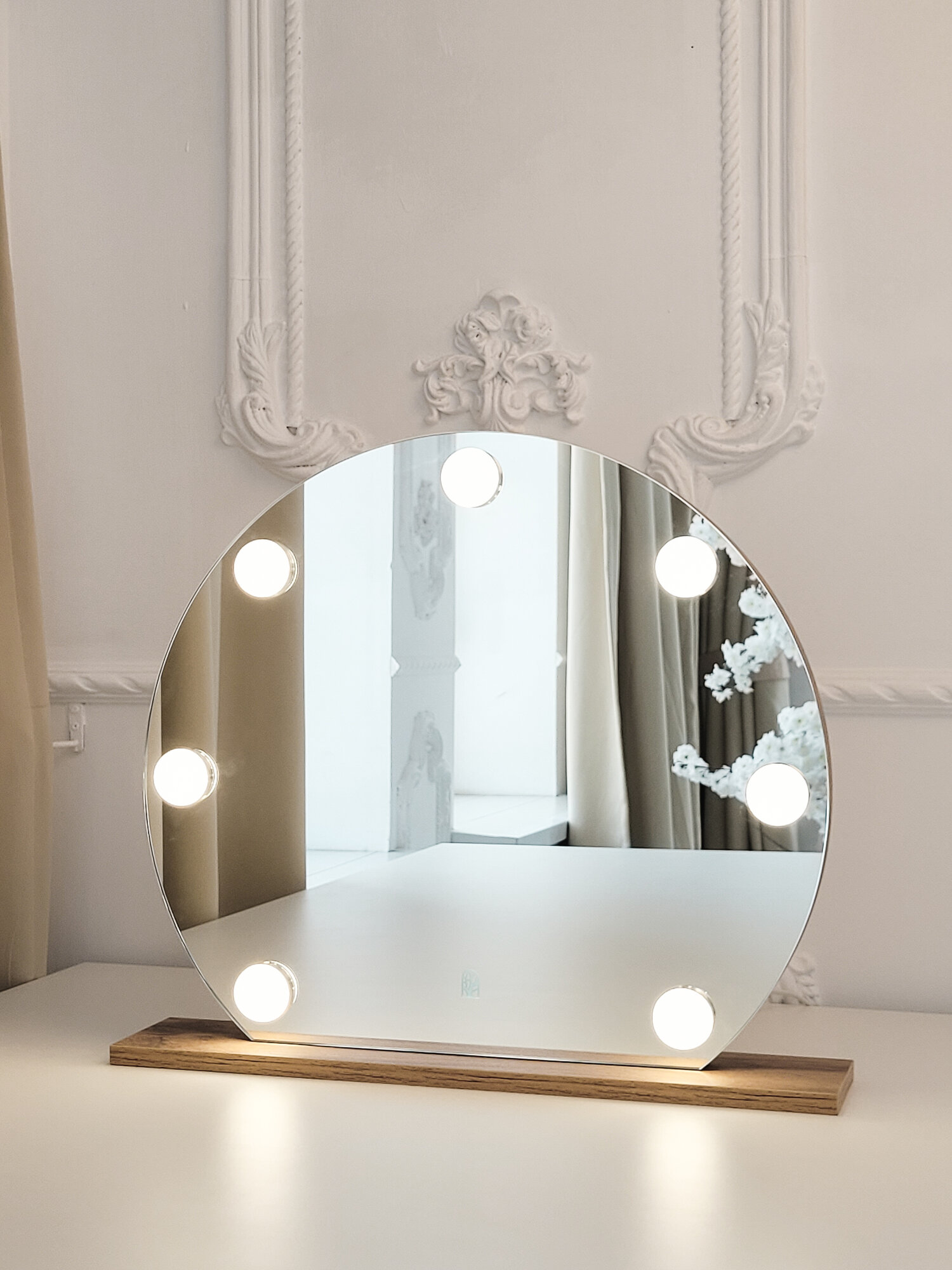 Отзывы на Настольное зеркало на подставке с лампами, кнопка сенсор, 58*58см Дуб вотан