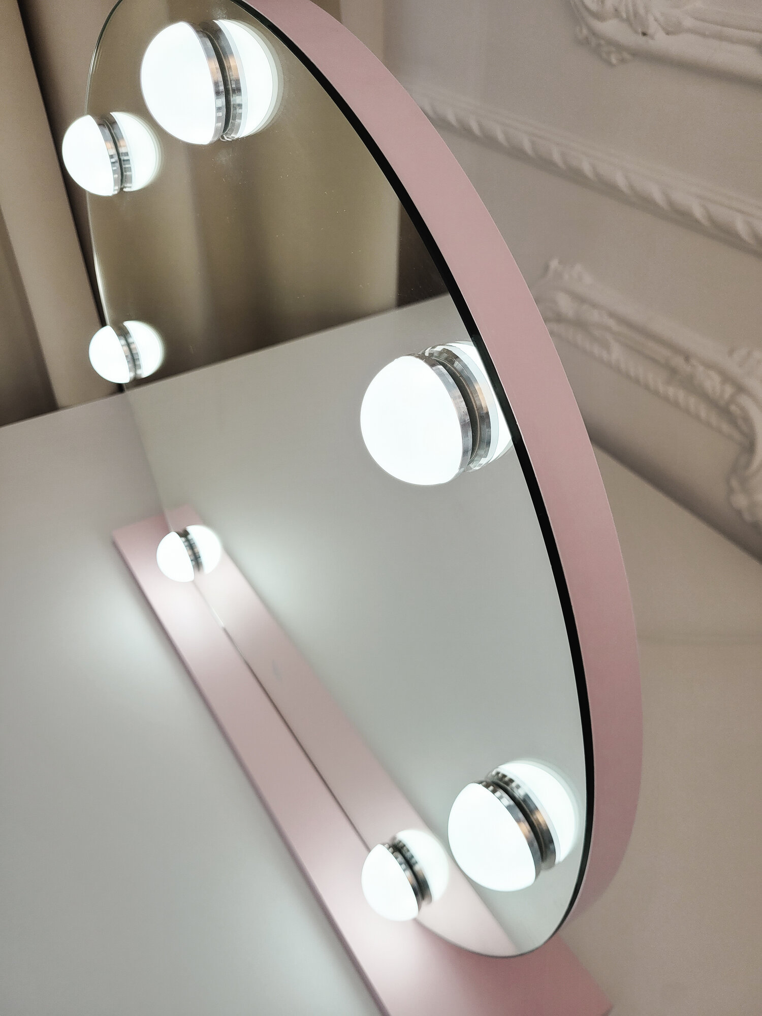 Настольное зеркало на подставке с лампами, кнопка сенсор, 58*58см Розовый информация: