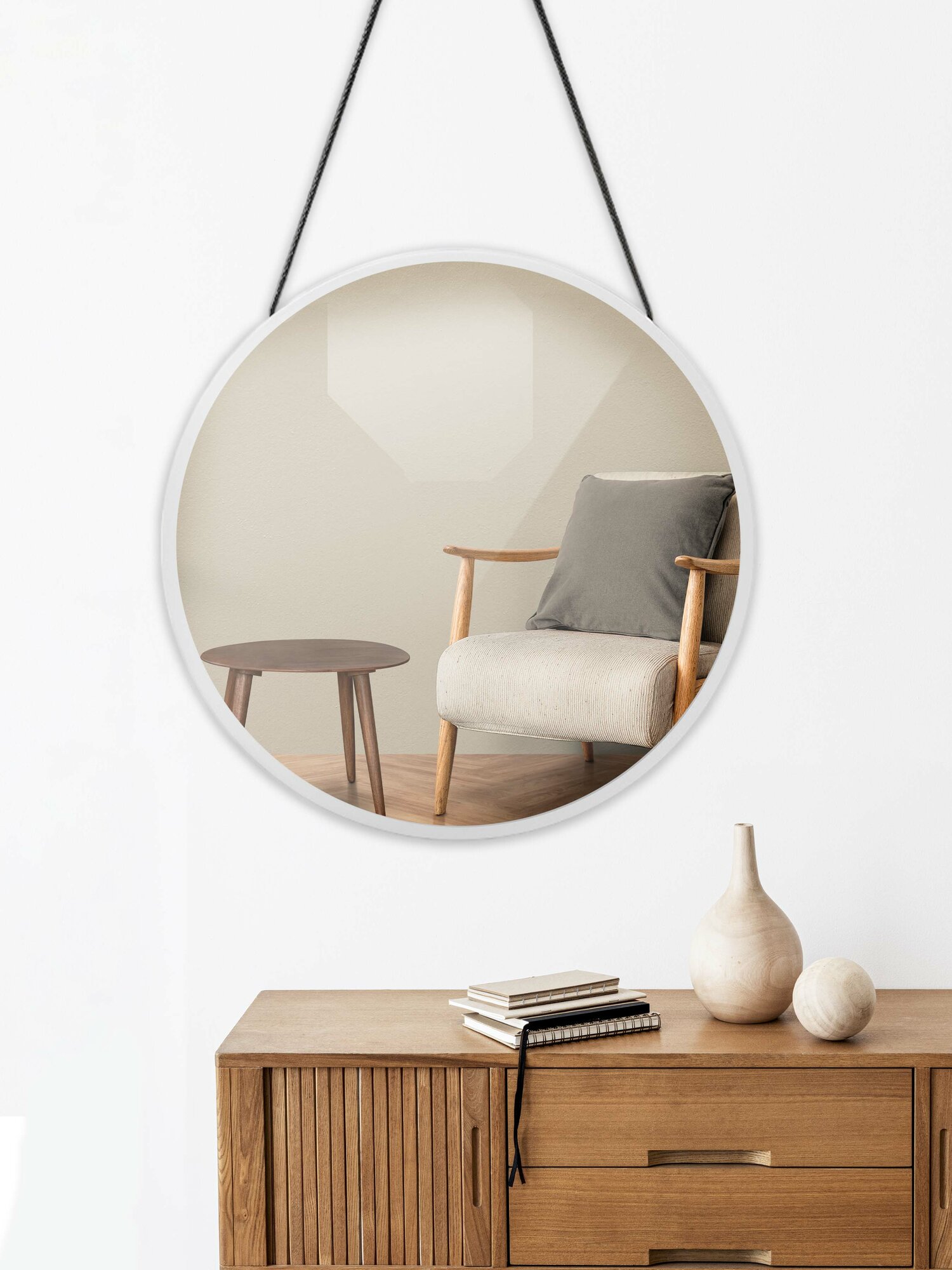 Зеркало Postermarket "Рей", круглое, настенное, в раме, цвет : белый, 70х70 см