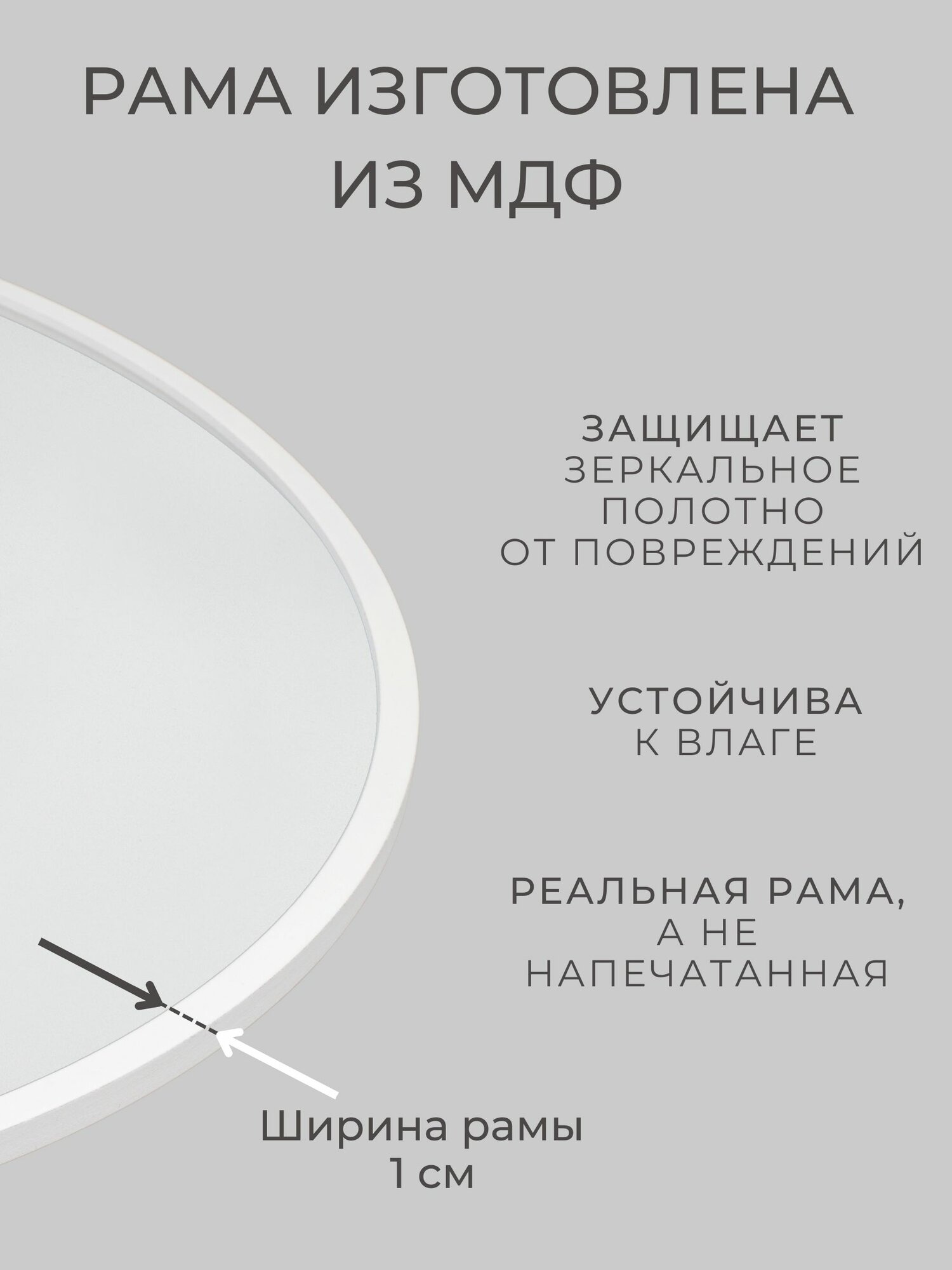 Зеркало Postermarket "Рей", круглое, настенное, в раме, цвет : белый, 70х70 см
