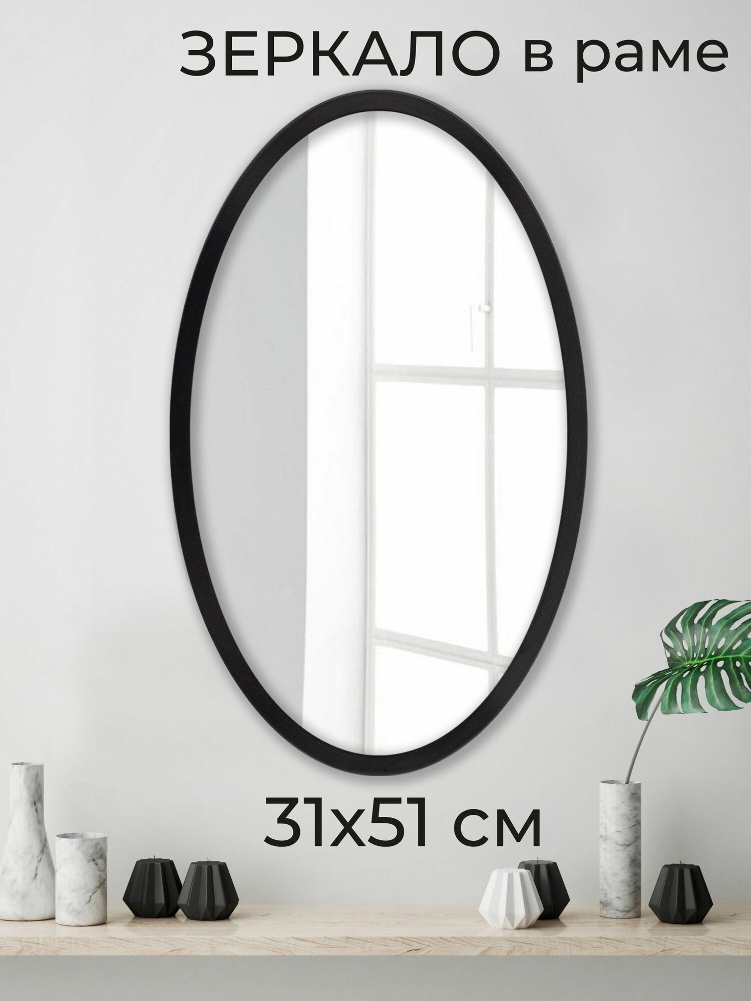 Зеркало настенное овальное интерьерное в раме Мастер Рио, 31х51 см, черный информация: