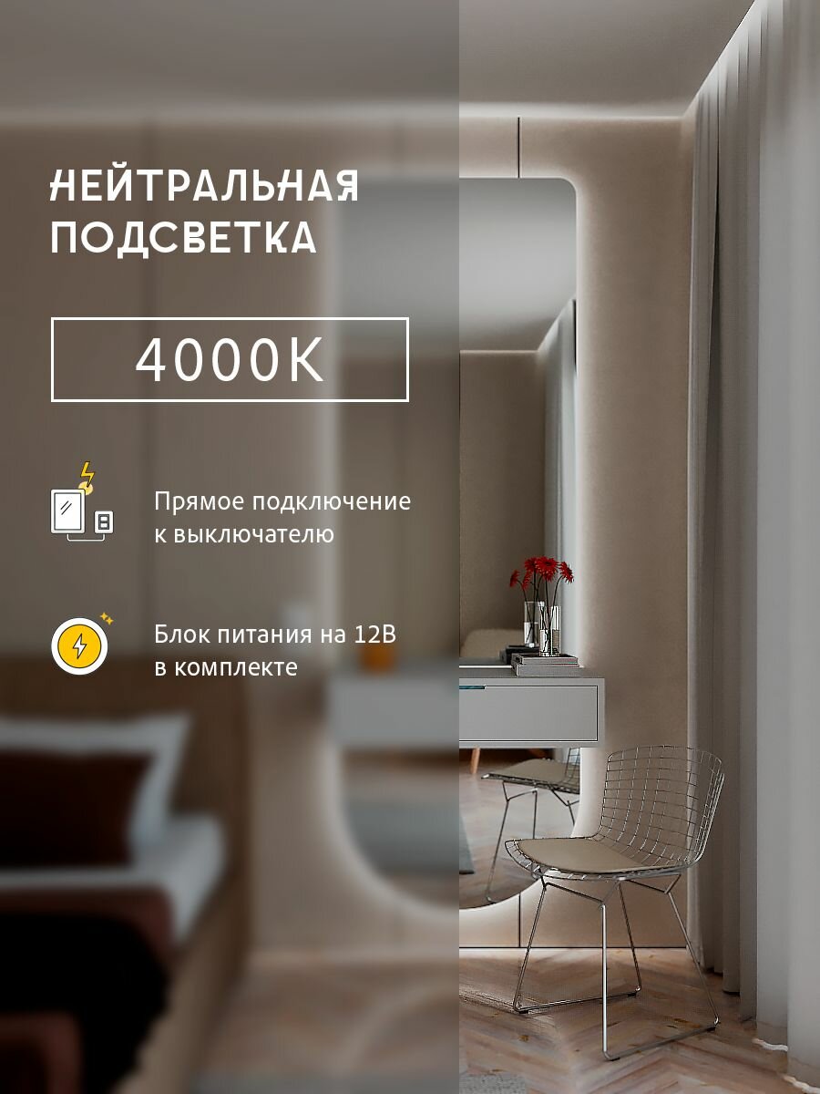 Арочное настенное зеркало с подсветкой в полный рост (80×220 см) для прихожей, и гардеробной, дизайнерское без рамы 22 710 ₽