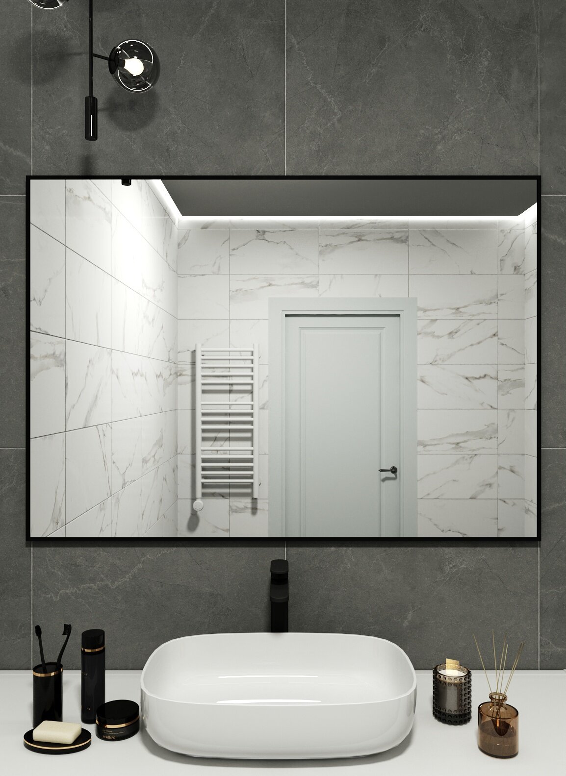 Отзывы на Зеркало в алюминиевой раме настенное ONE MIRROR 120х80 см. Черное