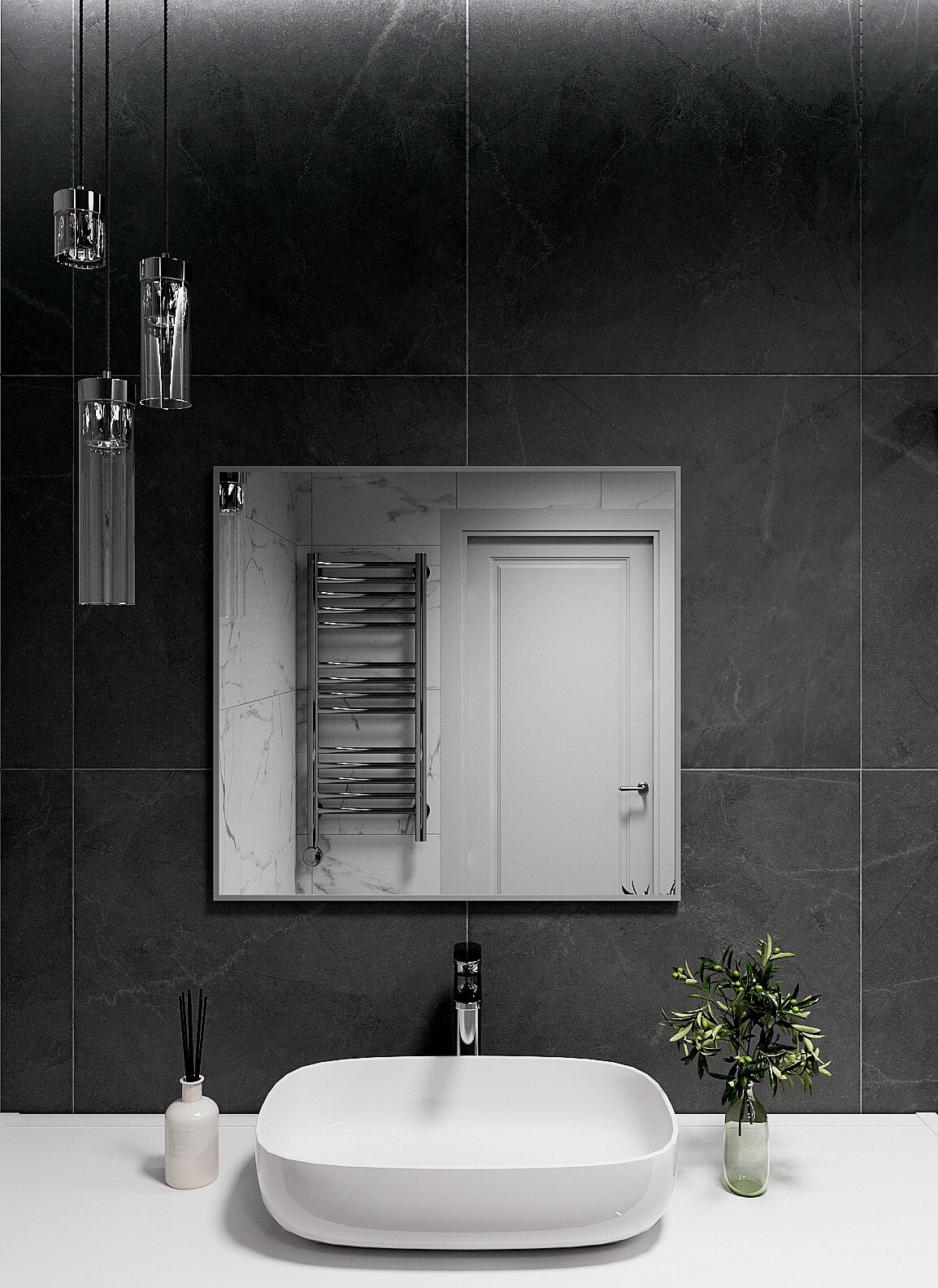 Зеркало в алюминиевой раме настенное ONE MIRROR 90х80 см. Черное