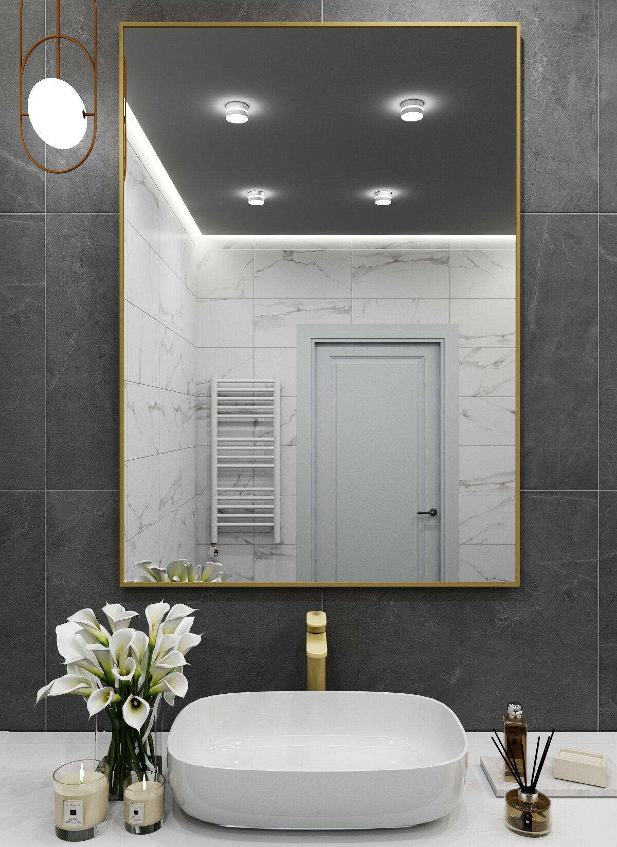 Отзывы на Зеркало в алюминиевой раме настенное ONE MIRROR 120х80 см. Золото