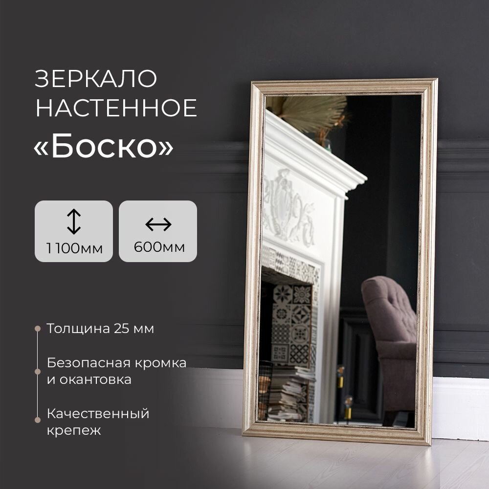 Зеркало настенное для прихожей прямоугольное интерьерное "Боско" 600х1100 информация: