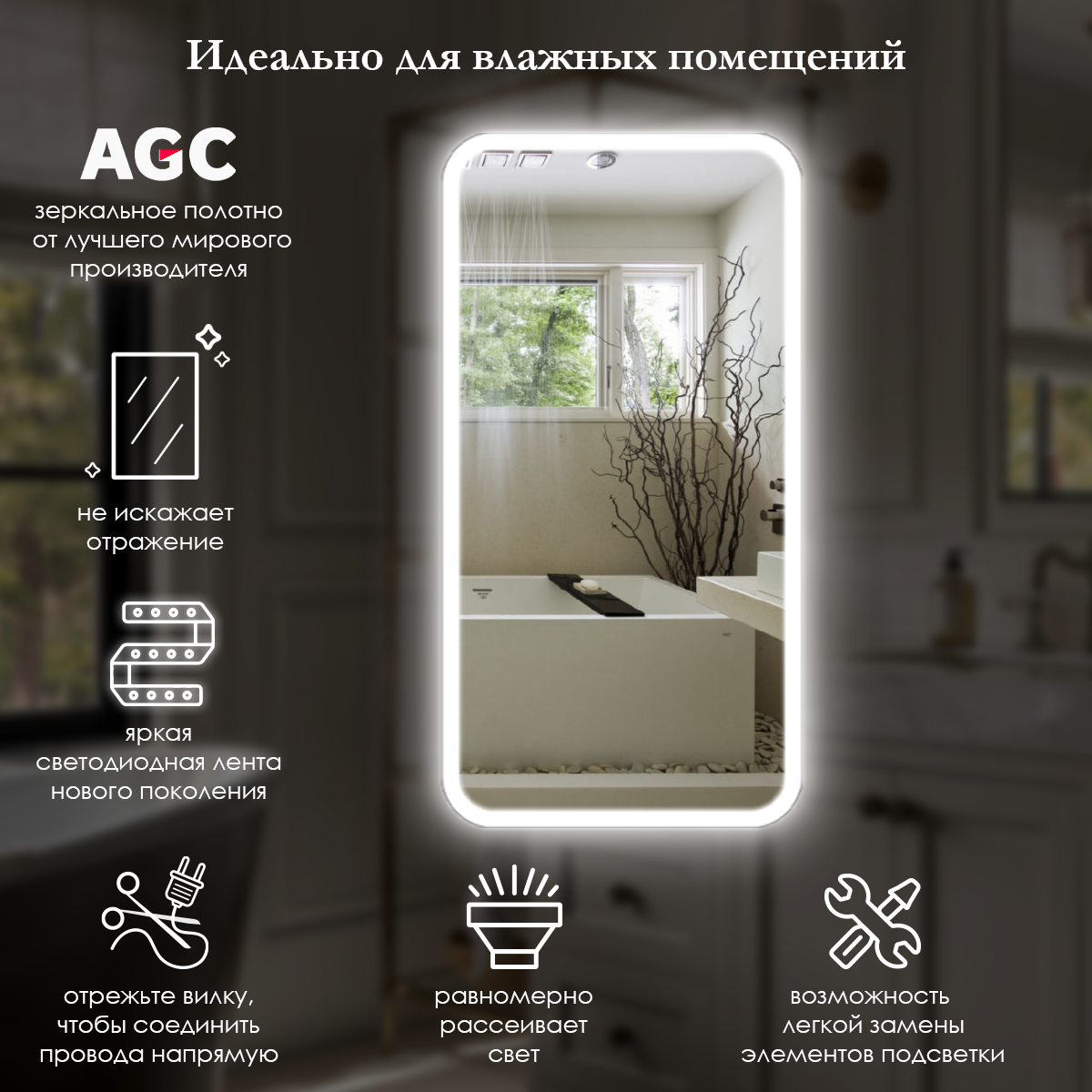 Зеркало настенное Maskota для ванной прямоугольное скругленное, с фронтальной подсветкой по краю, без сенсора, 80х40 см информация: