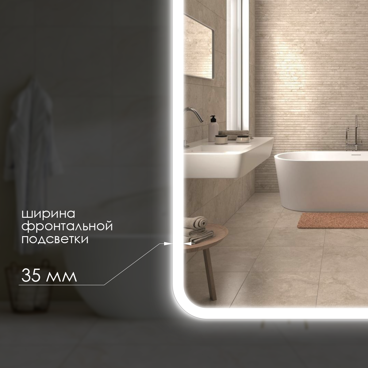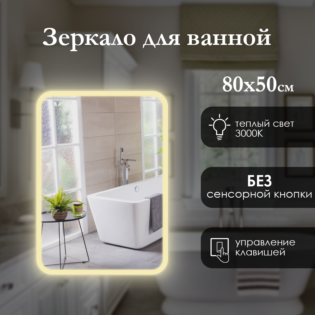 Зеркало настенное Maskota для ванной прямоугольное скругленное, с фронтальной подсветкой по краю, без сенсора, 80х60 см информация: