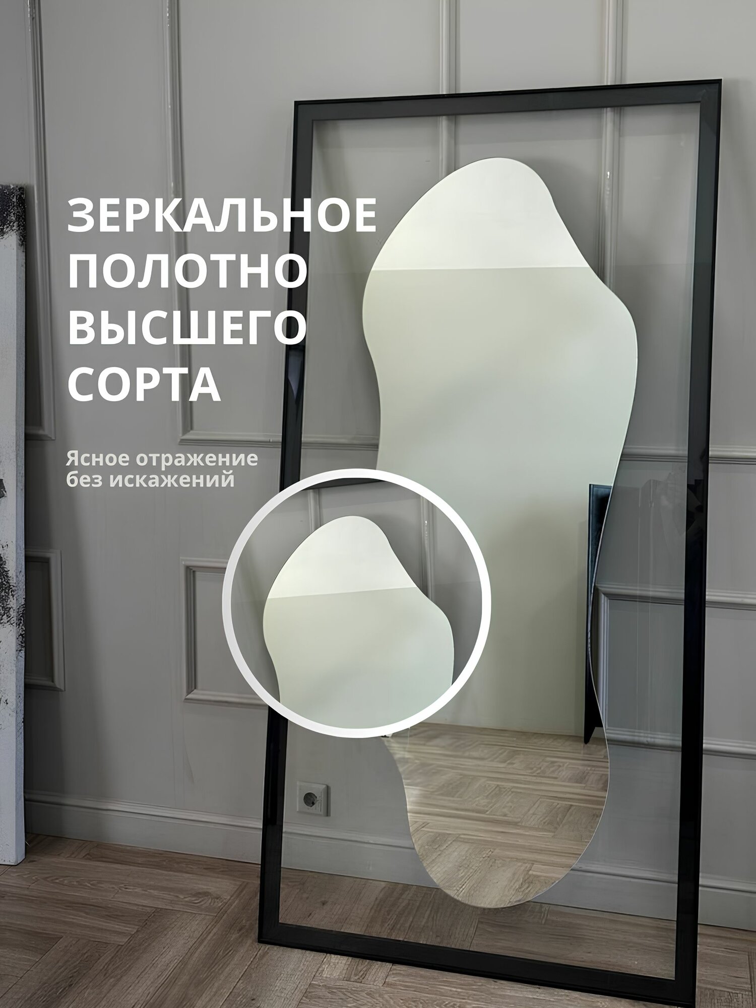 Ассиметричное бесформенное зеркало в черной металлической раме 180х80 напольное информация: