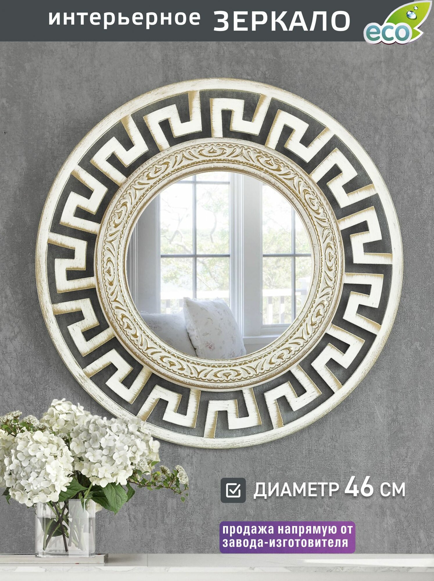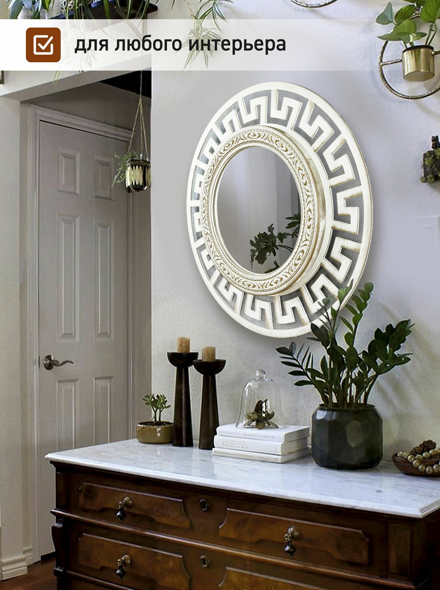 Зеркало Postermarket "Рей", круглое, настенное, в раме, цвет : белый, 70х70 см