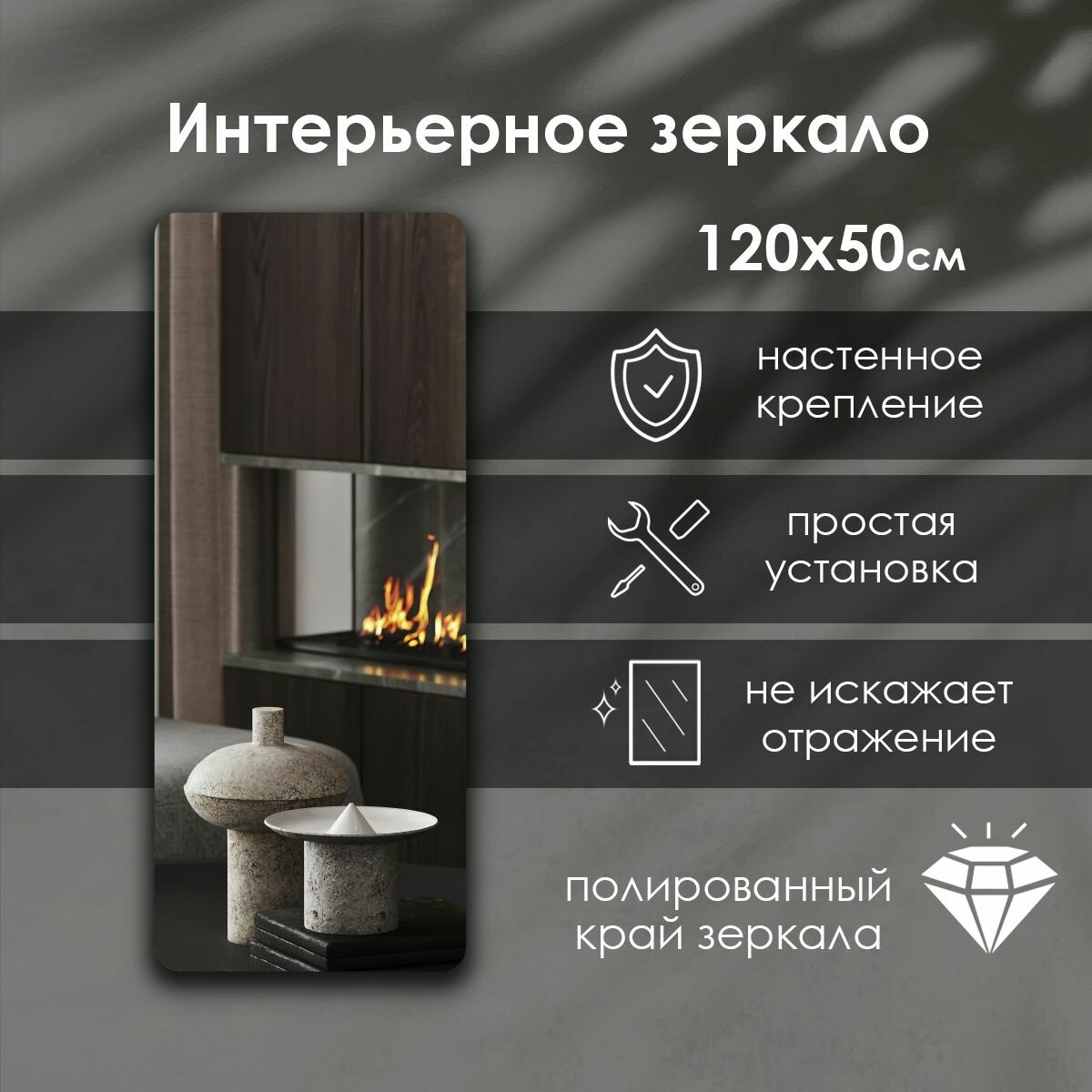 Зеркало интерьерное прямоугольное с закруглёнными углами, без рамы, противоосколочное, 110х50 см 5 225 ₽