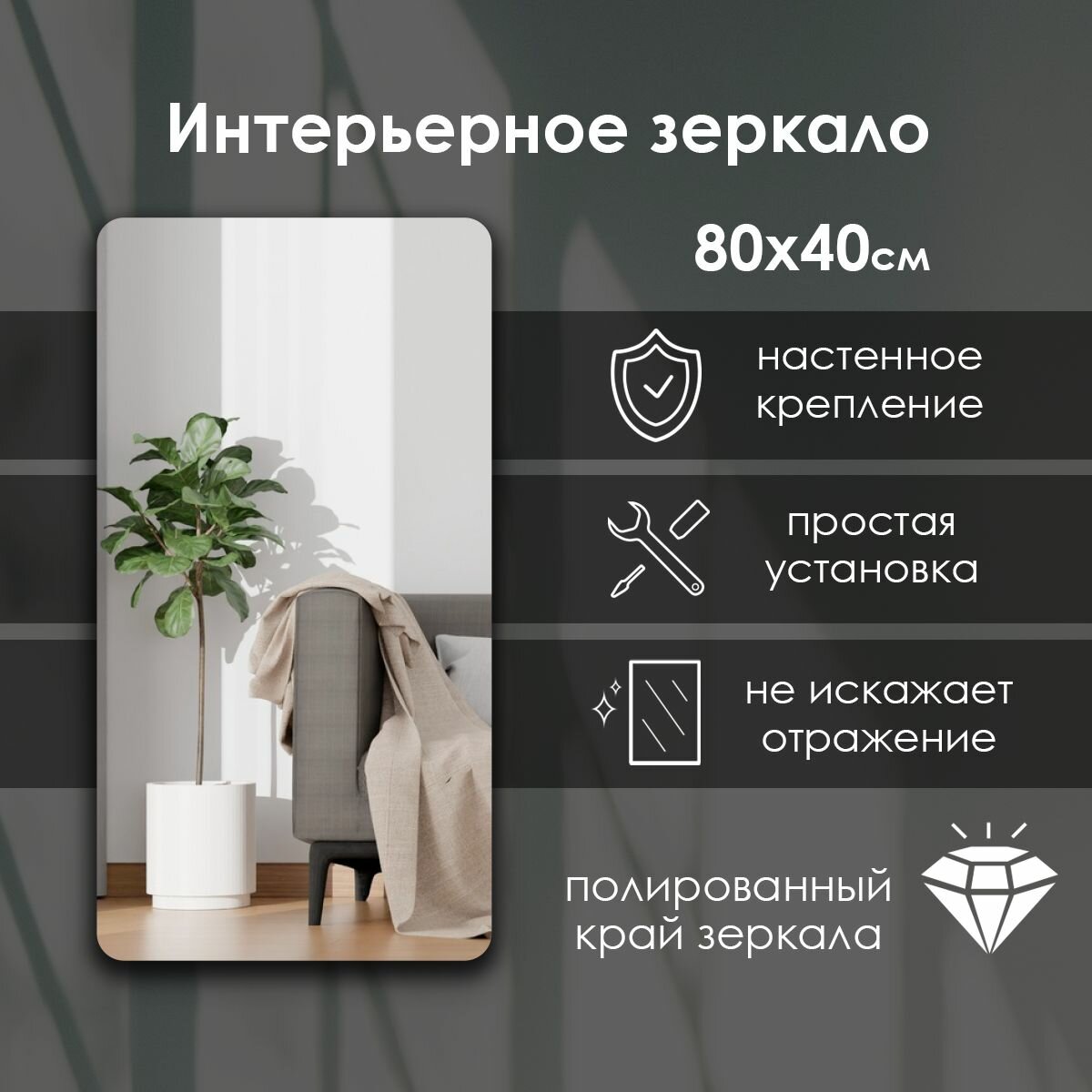 Настенное зеркало Сфера Отражения "Lexa"с закруглёнными углами, прямоугольное, без рамы, 80см x 40см информация: