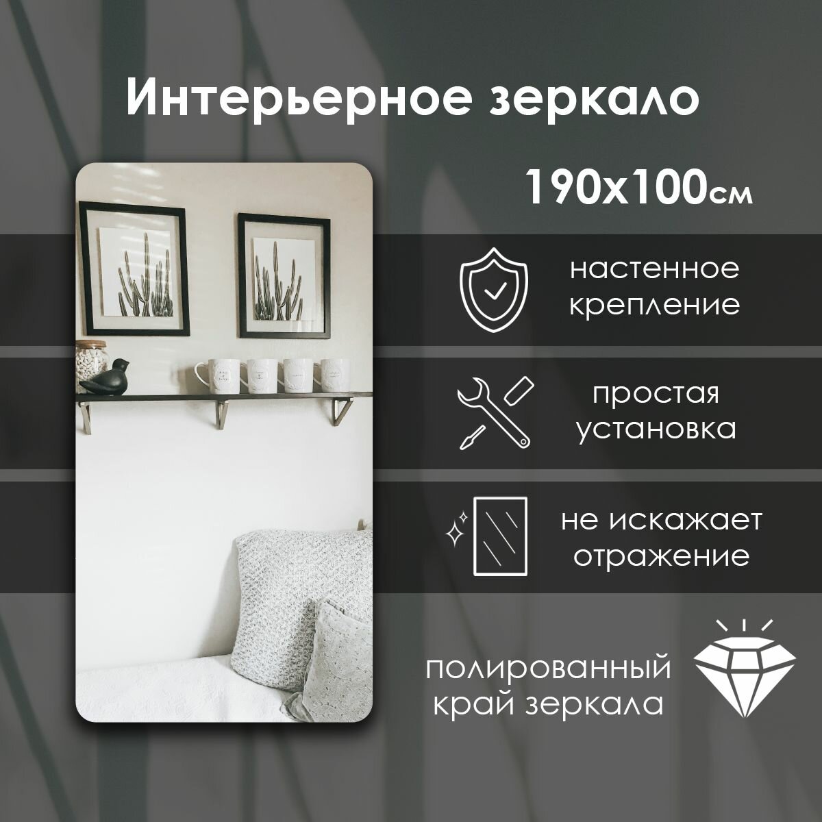 Интерьерное зеркало Сфера Отражения Lexa с закругленными углами, настенное, в полный рост, 200x80 см, без рамы 11 084 ₽
