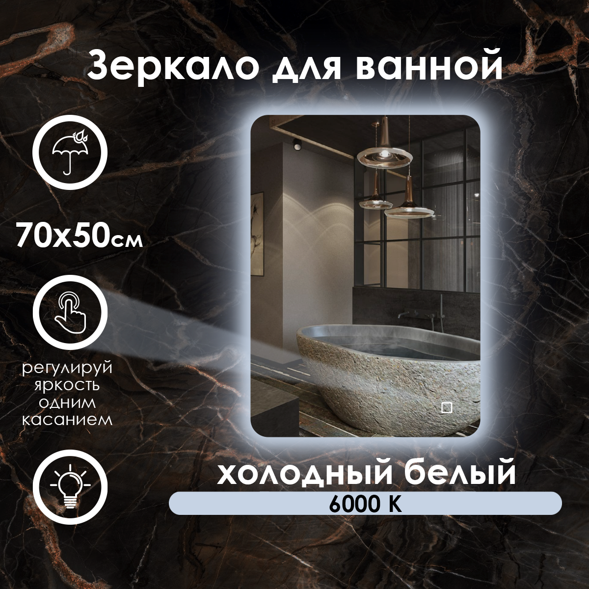 10 цен на Зеркало настенное Maskota для ванной прямоугольное скругленное, с парящей подсветкой на стену 6000К, 70х50 см