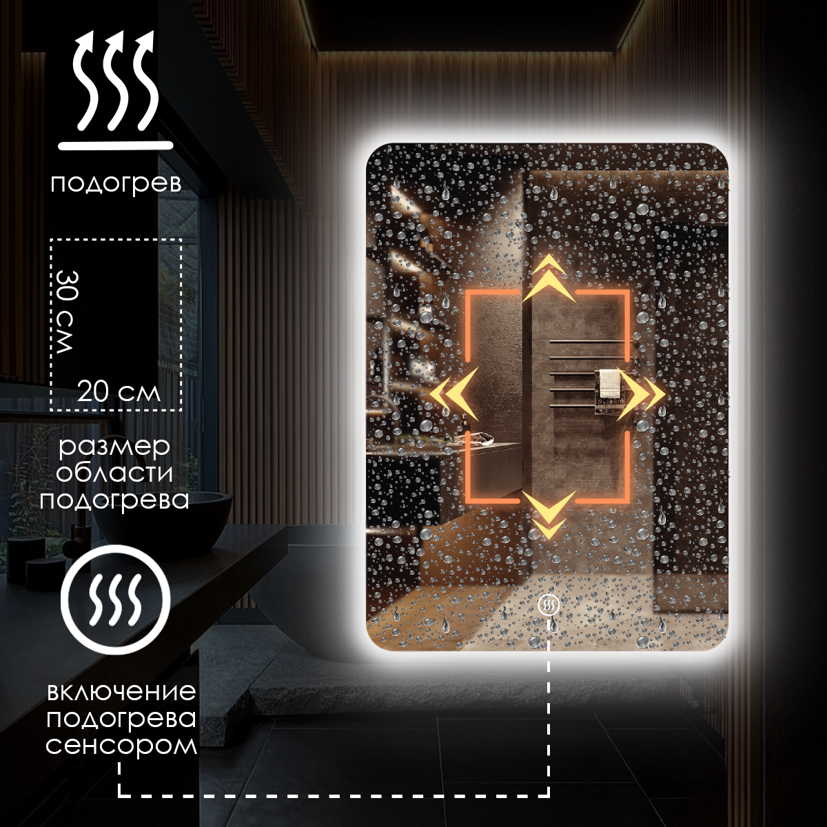 Отзывы на Зеркало настенное Maskota для ванной прямоугольное скругленное, с парящей подсветкой на стену, подогрев, 80х60 см