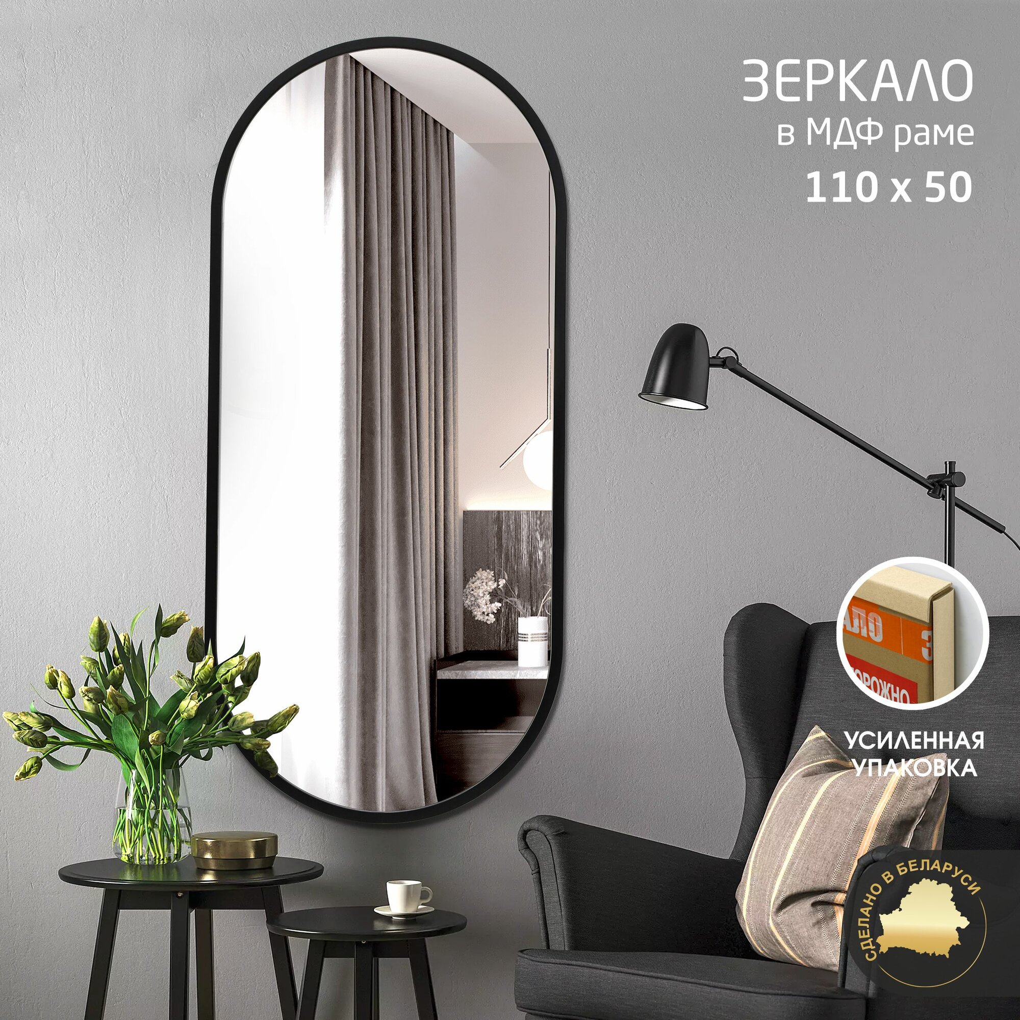 Отзывы на Зеркало Алмаз-Люкс, настенное, овальное, с рамой МДФ, 110х50 см, чёрное