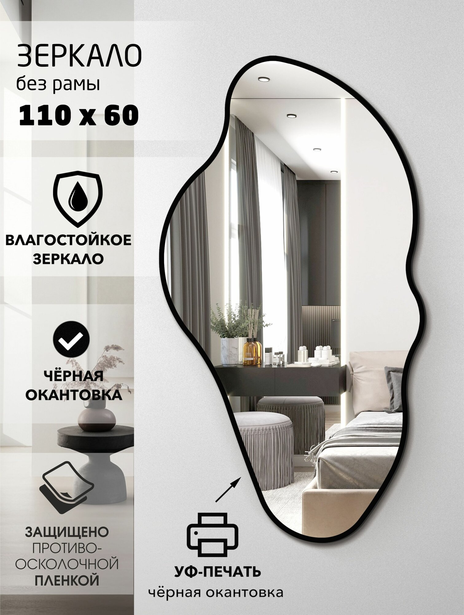 Настенное зеркало фигурное с черной окантовкой 110x60 см Алмаз-Люкс информация: