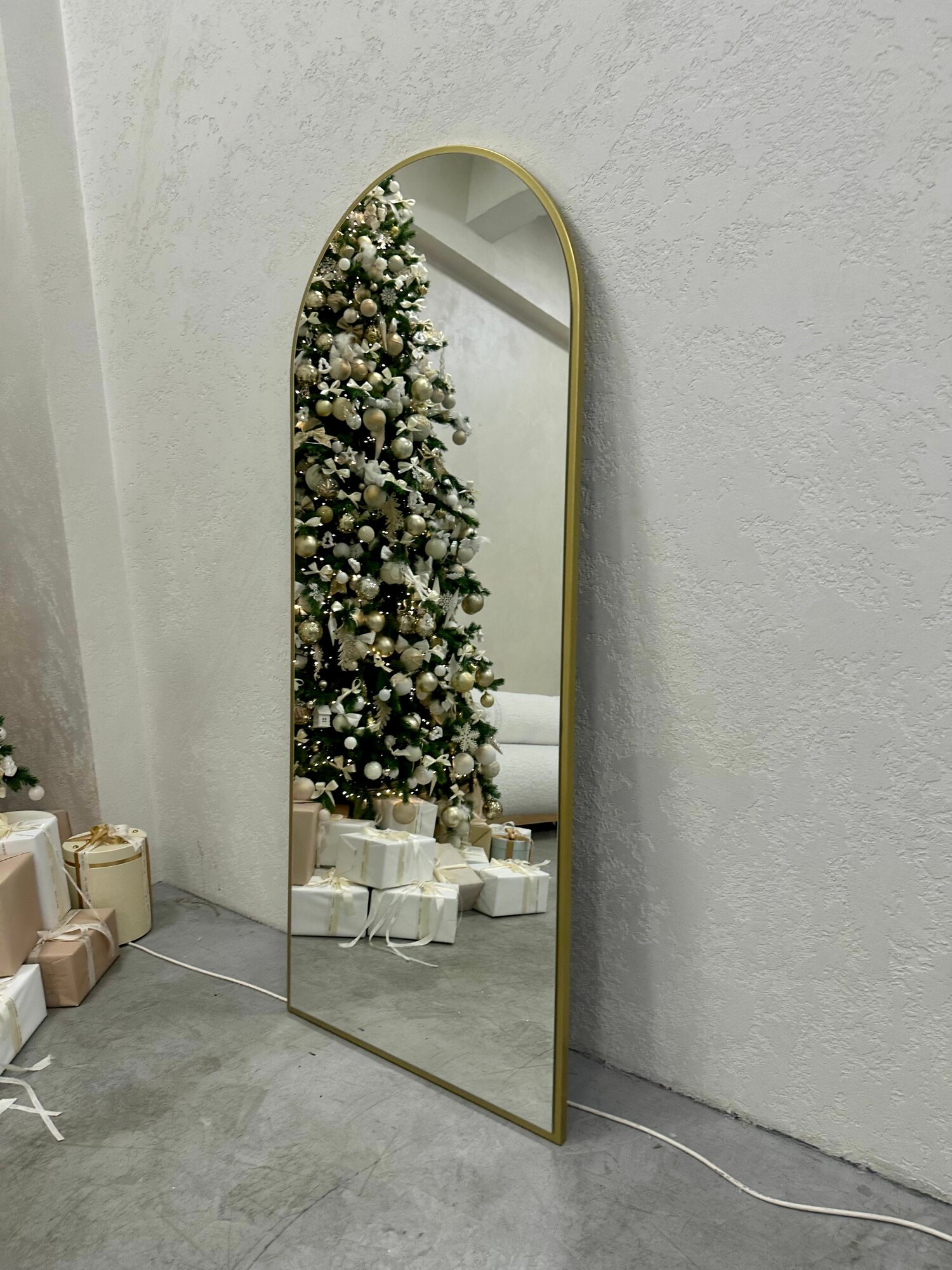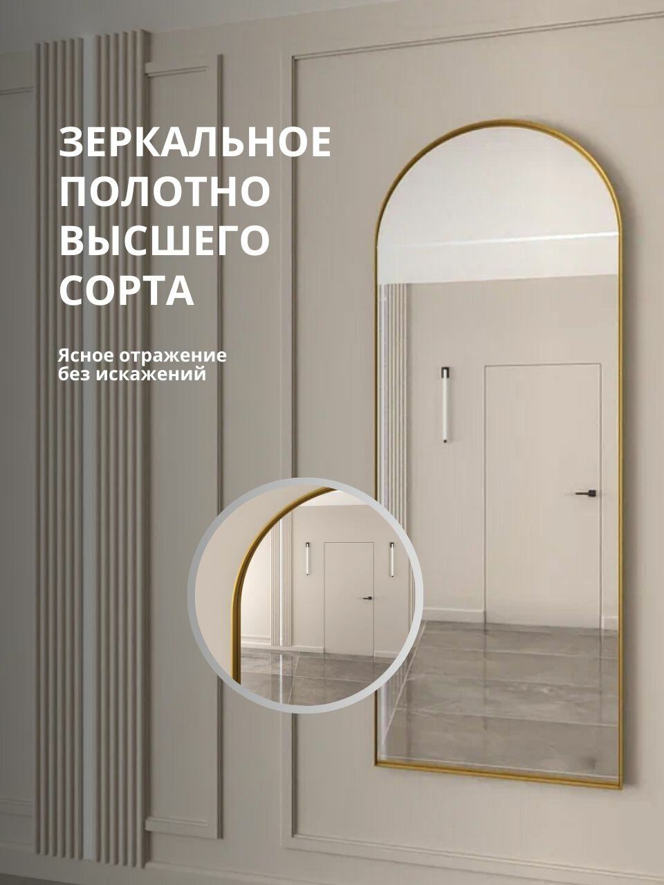 Отзывы на Арочное зеркало в металлической раме золотого цвета 200х70 арка