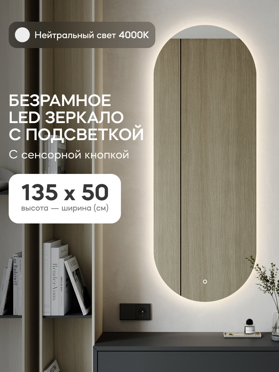 GENGLASS Зеркало настенное в полный рост с нейтральной подсветкой овальное NOLVIS NF LED XL 200x100 см, интерьерное 32 844 ₽