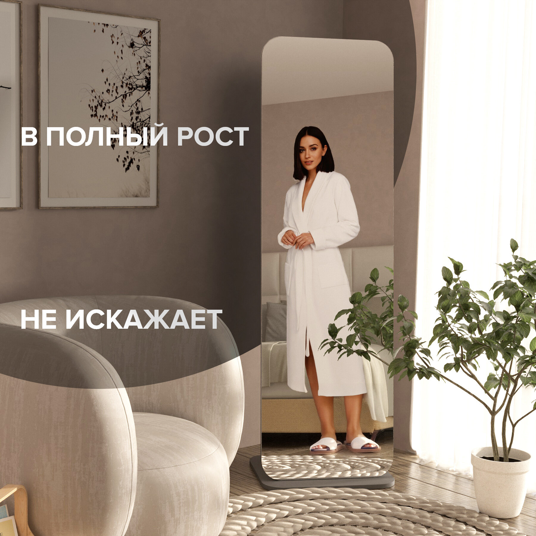 Напольное зеркало MIRROR'S, прямоугольное, без рамы, ЛДСП, 50х164см цвет граффит информация: