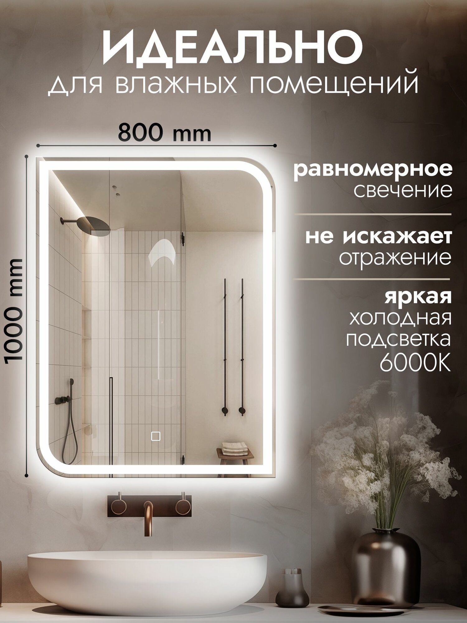 Настенное зеркало с подсветкой в ванную Montreal 80х100 см (ореольная подсветка, холодный свет 6000К, сенсорное управление, прямоугольное зеркало для ванной) информация: