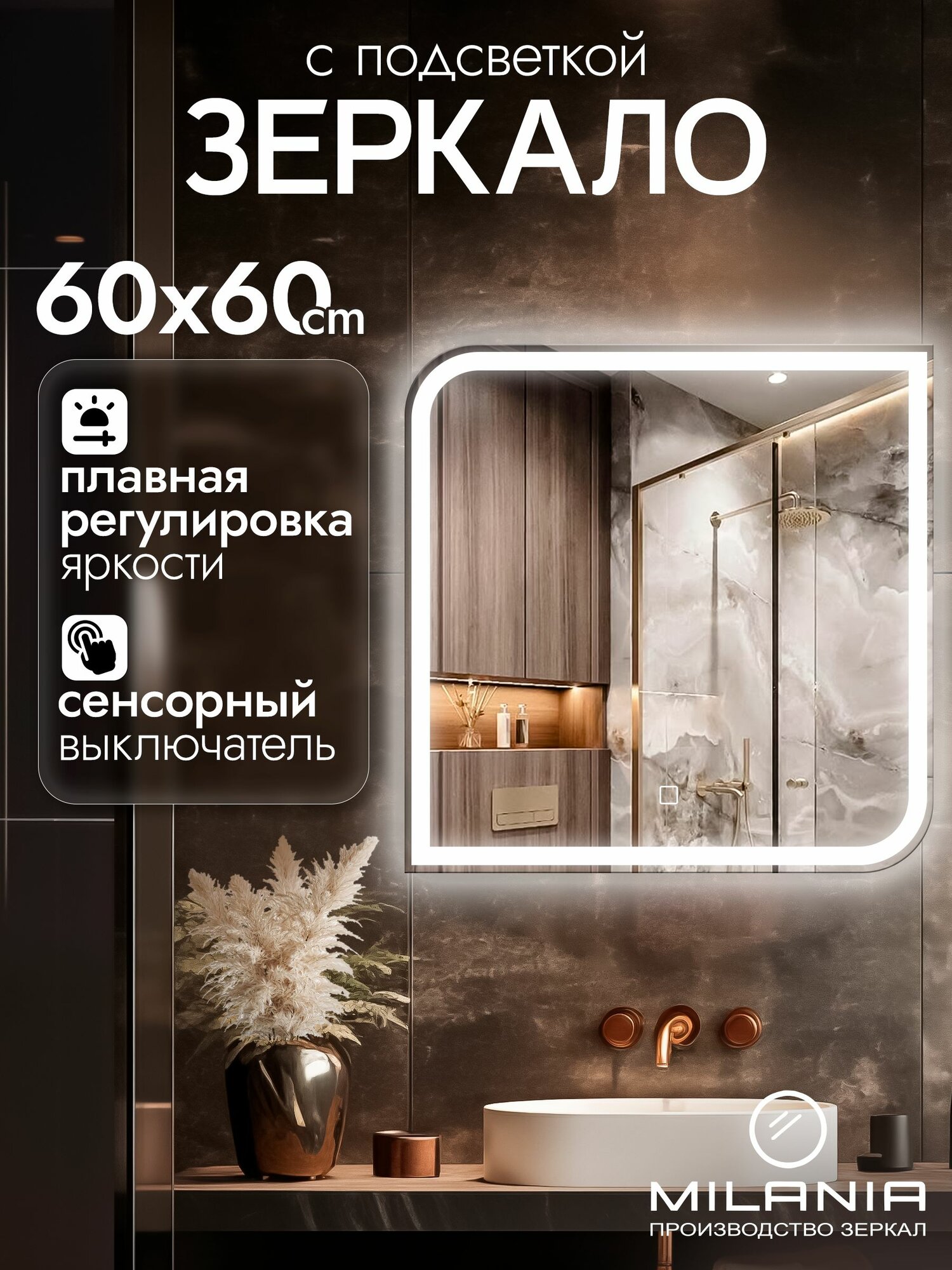 10 цен на Настенное зеркало с подсветкой в ванную Montreal 60х60 см (ореольная подсветка, холодный свет 6000К, сенсорное управление, прямоугольное зеркало для ванной)