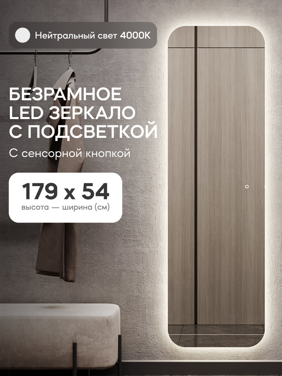 GENGLASS Зеркало настенное с нейтральной подсветкой 180x55 см KUVINO NF LED L, с сенсором информация:
